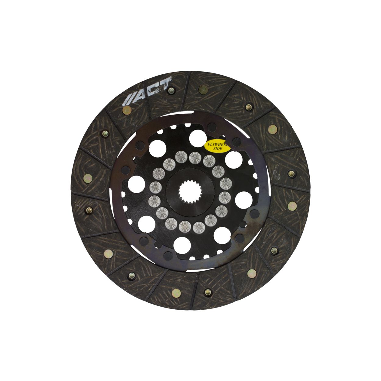 3000310 is a street rigid disc featuring premium organic materials with high copper content for better heat transfer and steel-backed lining for greater burst strength and durability. These discs are modified with reduced marcel for faster shift action to complement ACT pressure plates. The chrome-moly hub is heat-treated for strength and durability. Rivet design and materials are carefully selected for maximum strength. Lightweight, solid-hub design allows for quicker shifting and engagement. ACT's street rigid-hub discs provide race-proven performance with street manageability.