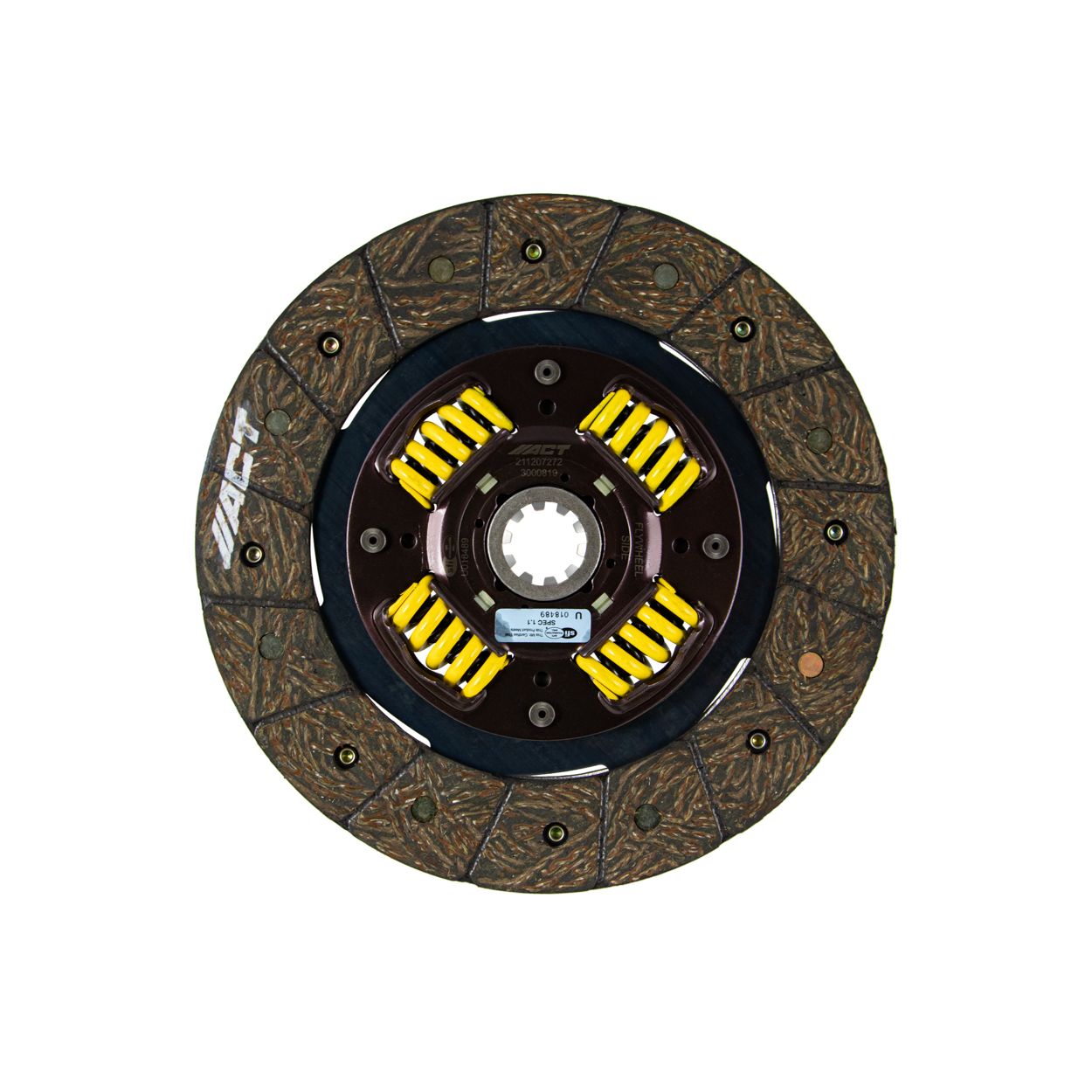 3000819 is a performance street disc and the most popular disc purchased. It features premium organic materials with high copper content for better heat transfer. Performance street discs allow for quicker shifting and smooth engagement. These discs feature a reduced marcel for faster shift action to complement ACT pressure plates. ACT spring-centered assemblies use bushings and cone springs similar to factory clutch discs. This creates frictional dampening, which improves clutch life and reduces noise. Quiet operation with increased strength and reliability.