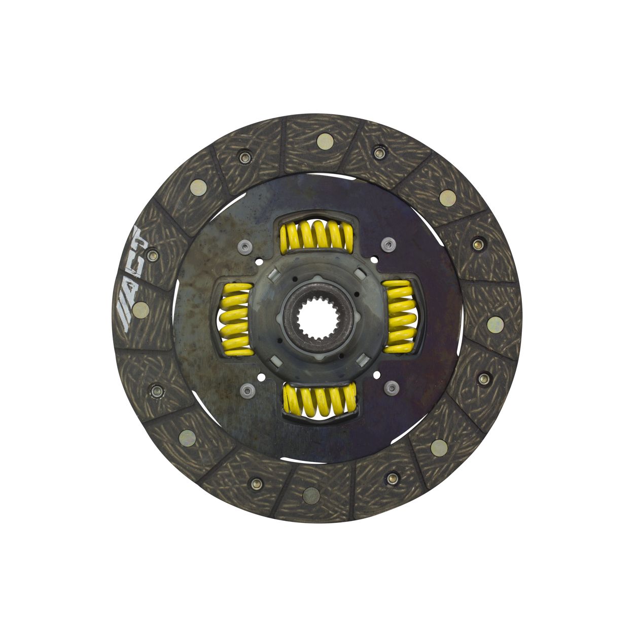 3000109 is a performance street disc and the most popular disc purchased. It features premium organic materials with high copper content for better heat transfer. Performance street discs allow for quicker shifting and smooth engagement. These discs feature a reduced marcel for faster shift action to complement ACT pressure plates. ACT spring-centered assemblies use bushings and cone springs similar to factory clutch discs. This creates frictional dampening, which improves clutch life and reduces noise. Quiet operation with increased strength and reliability.