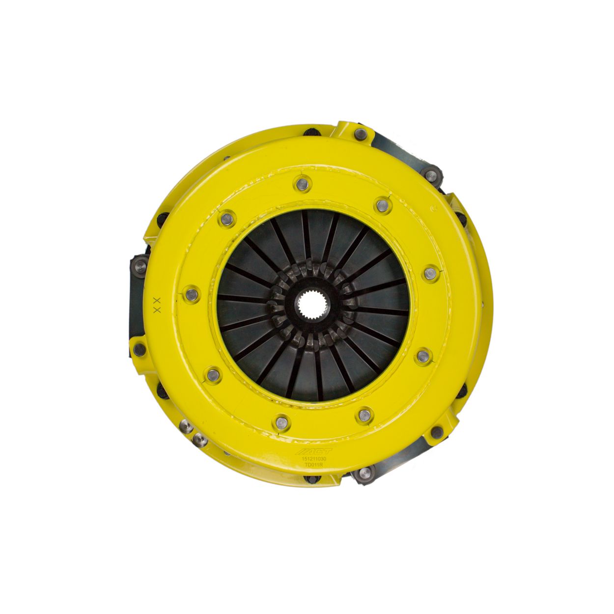 T1R-D03 twin disc kit offers twice the number of disc surfaces for better wear, heat capacity and long life compared to single disc kits. These kits use a proprietary Positive Lift Floater System design, which results in quiet operation with no floater rattle and no posts to wear. ACT twin disc kits endure an exclusive four-stage, heat treating process performed on all diaphragms. The ACT twin disc features the ability to adjust for disc wear and provides equal disengagement for discs. ACT's 6-pad rigid race discs are made with high quality, ceramic friction materials. The chrome-moly hub is heat-treated for strength and durability. The lightweight, rigid design allows for quicker shifts and trouble-free service. All ACT twin disc kits include a CNC-machined and dynamically balanced flywheel to ensure trouble-free installation and operation. ACT twin disc kits include a pressure plate, two discs, a floater, flywheel and alignment tool. Some kits may include a pilot bearing and release bearing.