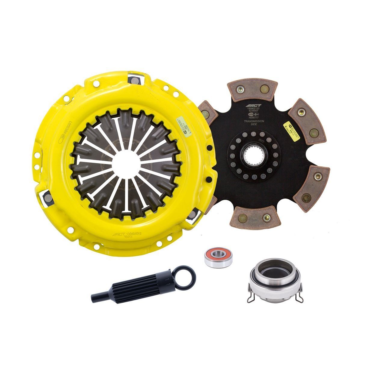 TA1-XTR6 kit features ACT's highly regarded Heavy Duty pressure plate and rigid 6 pad race disc delivering ultra-high torque capacity, aggressive engagement and increased toughness to withstand the demands of off-road racing. ACT’s exclusive diaphragm design dramatically increases clamp load, reduces deflection and maximizes clutch life. All diaphragms endure a four-stage heat-treating process for unparalleled performance. ACT precision pressure plate cover stampings provide rigidity and consistency while precision machined pressure plate castings absorb heat. ACT’s rigid center 6 pad race discs have a virtually indestructible rigid center and premium ceramic friction materials to hold power even under the most abusive conditions. Rigid design eliminates torsional damping for simplicity, reduced weight and quicker shifting.