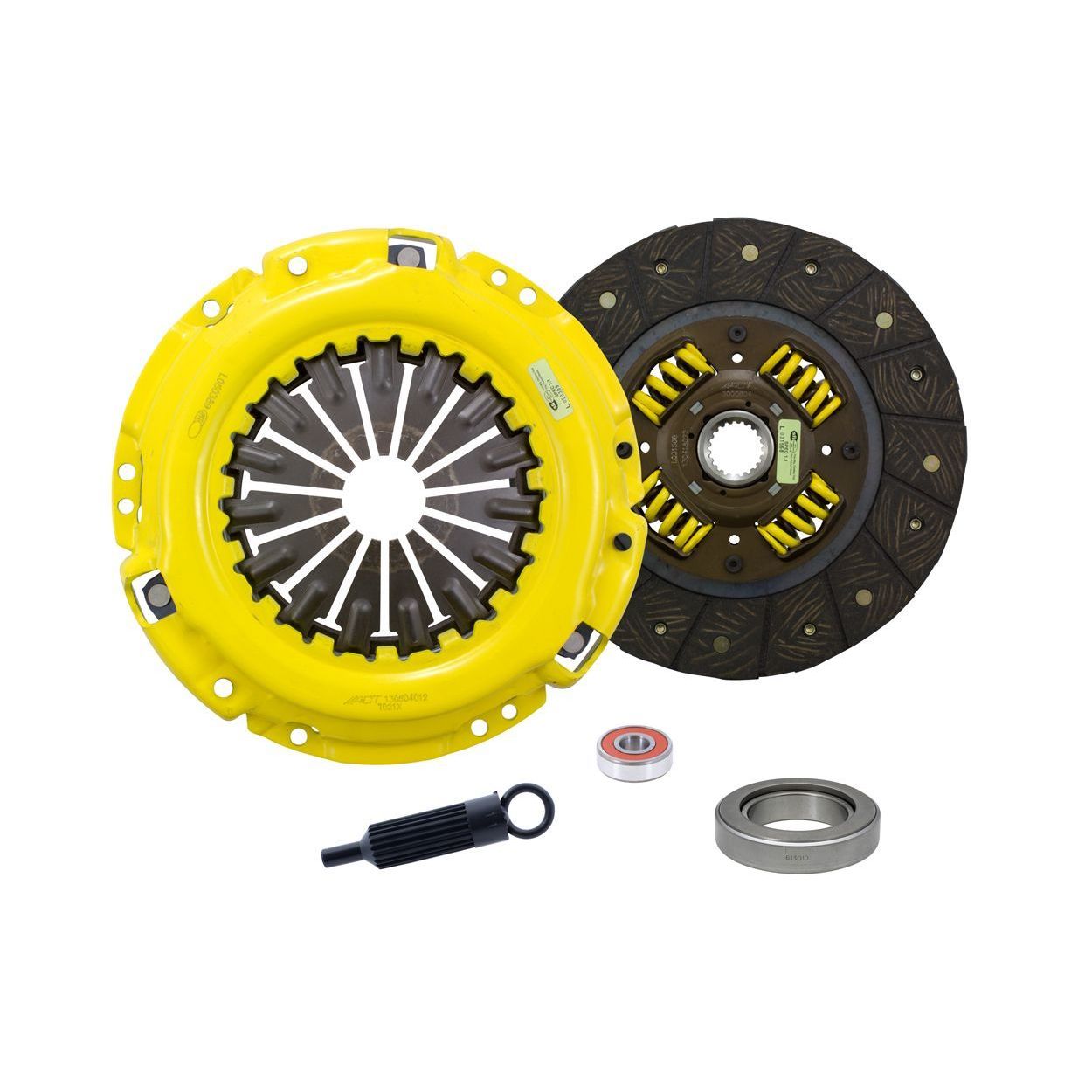 TS1-XTSS kit features an Xtreme pressure plate for the most demanding driver. ACT Xtreme pressure plates use exclusive diaphragm design to increase clamp load, reduce deflection and maximize clutch life. All diaphragms endure a four-stage, heat-treating process for unparalleled performance. ACT pressure plates have precision cover stampings to provide rigidity and consistency. ACT's Performance street discs are the most popular disc purchased. They feature premium organic materials with high copper content for better heat transfer and steel-backed lining for greater burst strength and durability. These discs have reduced marcel for faster shift action to complement ACT pressure plates. Quiet operation with increased strength and reliability.