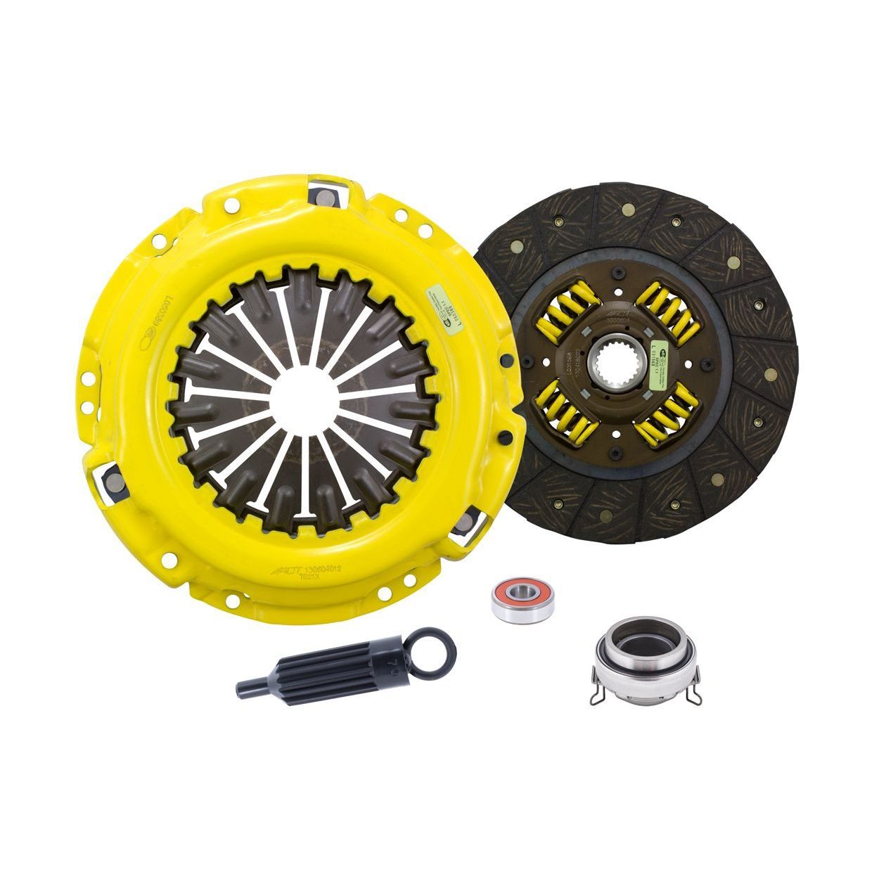 TS5-XTSS kit features an Xtreme pressure plate for the most demanding driver. ACT Xtreme pressure plates use exclusive diaphragm design to increase clamp load, reduce deflection and maximize clutch life. All diaphragms endure a four-stage, heat-treating process for unparalleled performance. ACT pressure plates have precision cover stampings to provide rigidity and consistency. ACT's Performance street discs are the most popular disc purchased. They feature premium organic materials with high copper content for better heat transfer and steel-backed lining for greater burst strength and durability. These discs have reduced marcel for faster shift action to complement ACT pressure plates. Quiet operation with increased strength and reliability.