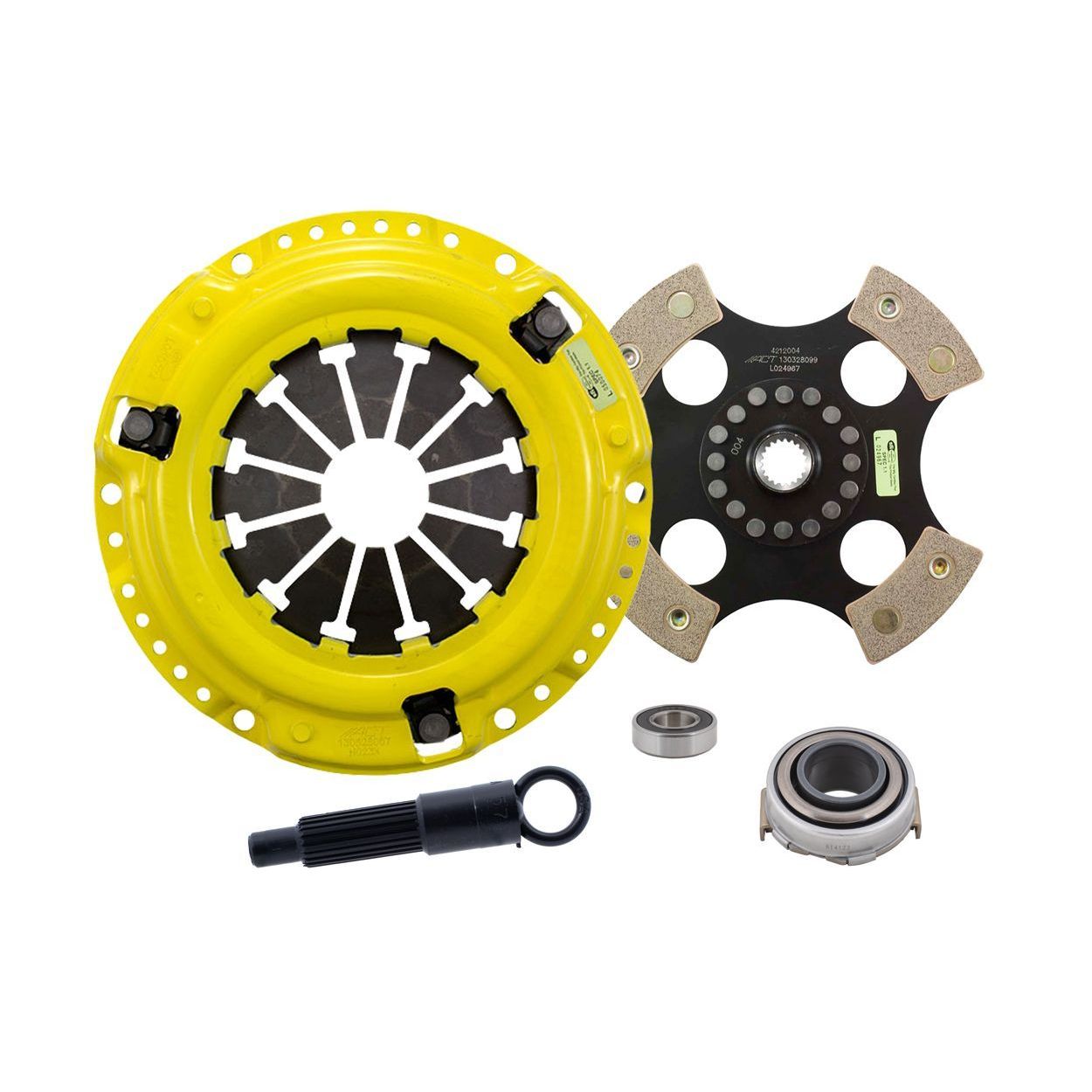 HC5-XTR4 kit features an Xtreme pressure plate for the most demanding driver. ACT Xtreme pressure plates use exclusive diaphragm design to increase clamp load, reduce deflection and maximize clutch life. All diaphragms endure a four-stage, heat-treating process for unparalleled performance. ACT pressure plates have precision cover stampings to provide rigidity and consistency. ACT's 4-pad rigid race discs are made with high quality, ceramic friction materials. The chrome-moly hub is heat-treated for strength and durability. The lightweight, rigid design allows for quicker shifts and smooth, trouble-free service. With the 4-pad rigid race disc, engagement is harsher, but shifting is faster. The 4-pad rigid race disc is well-suited for the smaller disc sizes in smaller engines.