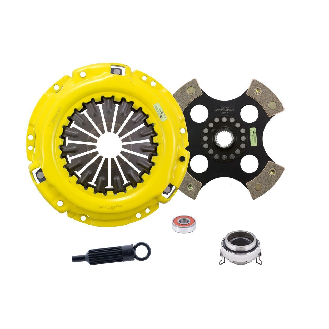 TS3-XTR4 kit features an Xtreme pressure plate for the most demanding driver. ACT Xtreme pressure plates use exclusive diaphragm design to increase clamp load, reduce deflection and maximize clutch life. All diaphragms endure a four-stage, heat-treating process for unparalleled performance. ACT pressure plates have precision cover stampings to provide rigidity and consistency. ACT's 4-pad rigid race discs are made with high quality, ceramic friction materials. The chrome-moly hub is heat-treated for strength and durability. The lightweight, rigid design allows for quicker shifts and smooth, trouble-free service. With the 4-pad rigid race disc, engagement is harsher, but shifting is faster. The 4-pad rigid race disc is well-suited for the smaller disc sizes in smaller engines.