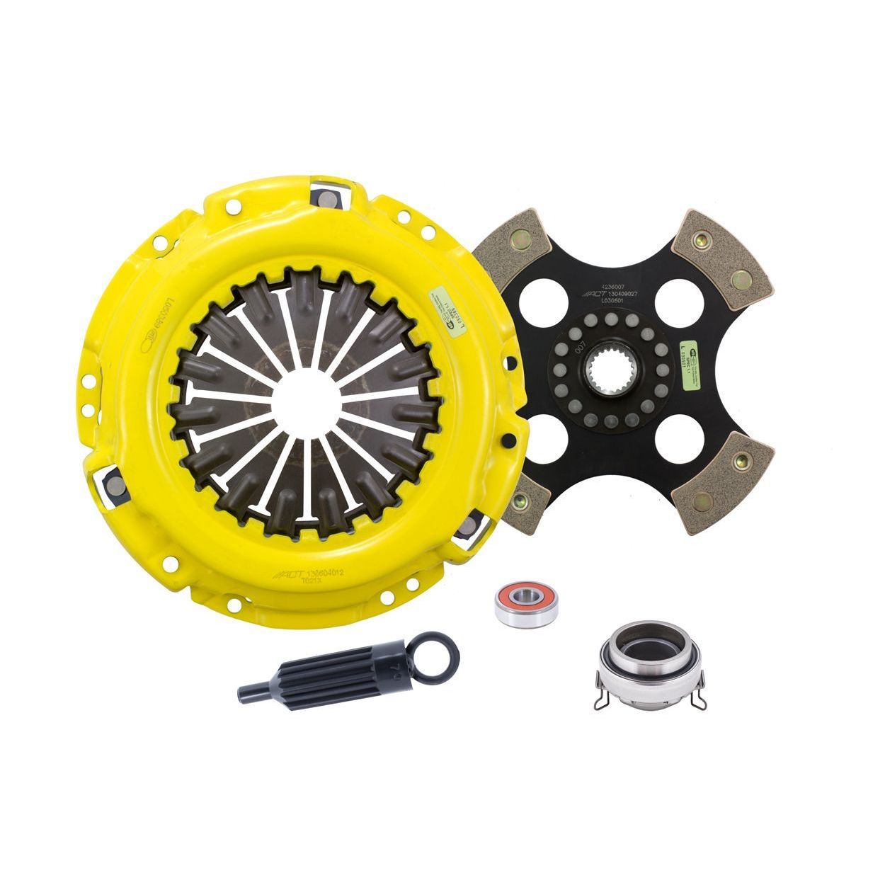 TS5-XTR4 kit features an Xtreme pressure plate for the most demanding driver. ACT Xtreme pressure plates use exclusive diaphragm design to increase clamp load, reduce deflection and maximize clutch life. All diaphragms endure a four-stage, heat-treating process for unparalleled performance. ACT pressure plates have precision cover stampings to provide rigidity and consistency. ACT's 4-pad rigid race discs are made with high quality, ceramic friction materials. The chrome-moly hub is heat-treated for strength and durability. The lightweight, rigid design allows for quicker shifts and smooth, trouble-free service. With the 4-pad rigid race disc, engagement is harsher, but shifting is faster. The 4-pad rigid race disc is well-suited for the smaller disc sizes in smaller engines.