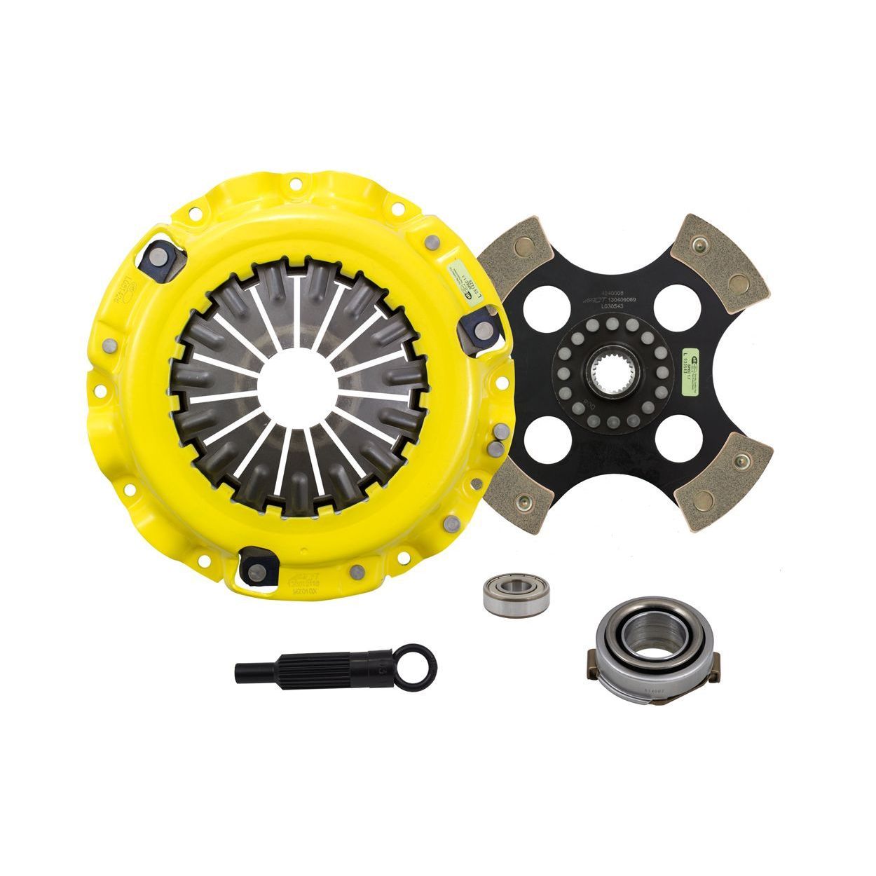 Z64-XTR4 kit features an Xtreme pressure plate for the most demanding driver. ACT Xtreme pressure plates use exclusive diaphragm design to increase clamp load, reduce deflection and maximize clutch life. All diaphragms endure a four-stage, heat-treating process for unparalleled performance. ACT pressure plates have precision cover stampings to provide rigidity and consistency. ACT's 4-pad rigid race discs are made with high quality, ceramic friction materials. The chrome-moly hub is heat-treated for strength and durability. The lightweight, rigid design allows for quicker shifts and smooth, trouble-free service. With the 4-pad rigid race disc, engagement is harsher, but shifting is faster. The 4-pad rigid race disc is well-suited for the smaller disc sizes in smaller engines.