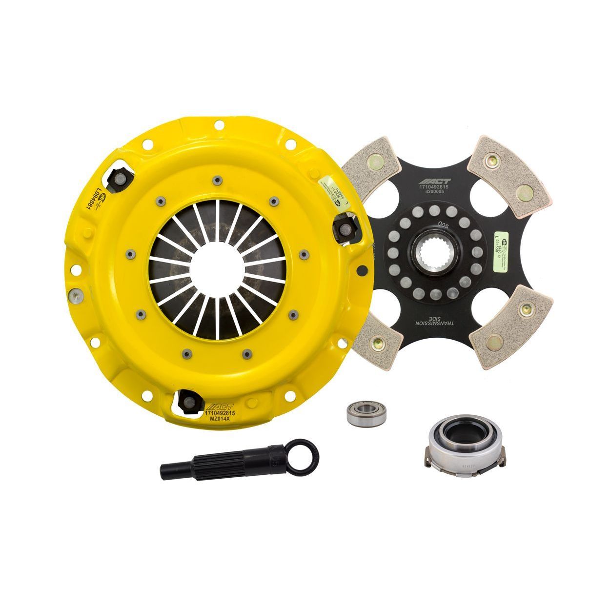 ZM1-XTR4 kit features an Xtreme pressure plate for the most demanding driver. ACT Xtreme pressure plates use exclusive diaphragm design to increase clamp load, reduce deflection and maximize clutch life. All diaphragms endure a four-stage, heat-treating process for unparalleled performance. ACT pressure plates have precision cover stampings to provide rigidity and consistency. ACT's 4-pad rigid race discs are made with high quality, ceramic friction materials. The chrome-moly hub is heat-treated for strength and durability. The lightweight, rigid design allows for quicker shifts and smooth, trouble-free service. With the 4-pad rigid race disc, engagement is harsher, but shifting is faster. The 4-pad rigid race disc is well-suited for the smaller disc sizes in smaller engines.