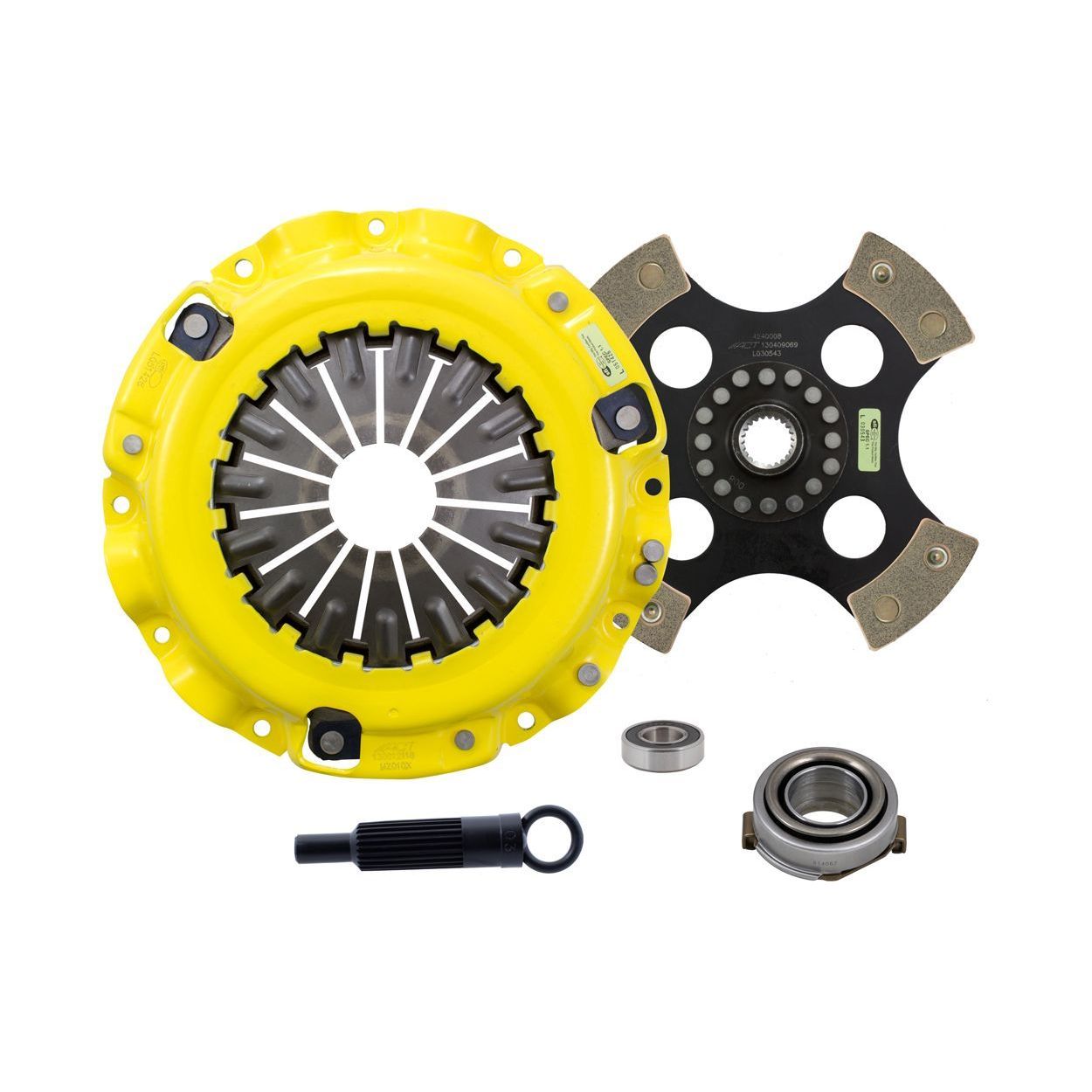 ZT2-XTR4 kit features an Xtreme pressure plate for the most demanding driver. ACT Xtreme pressure plates use exclusive diaphragm design to increase clamp load, reduce deflection and maximize clutch life. All diaphragms endure a four-stage, heat-treating process for unparalleled performance. ACT pressure plates have precision cover stampings to provide rigidity and consistency. ACT's 4-pad rigid race discs are made with high quality, ceramic friction materials. The chrome-moly hub is heat-treated for strength and durability. The lightweight, rigid design allows for quicker shifts and smooth, trouble-free service. With the 4-pad rigid race disc, engagement is harsher, but shifting is faster. The 4-pad rigid race disc is well-suited for the smaller disc sizes in smaller engines.