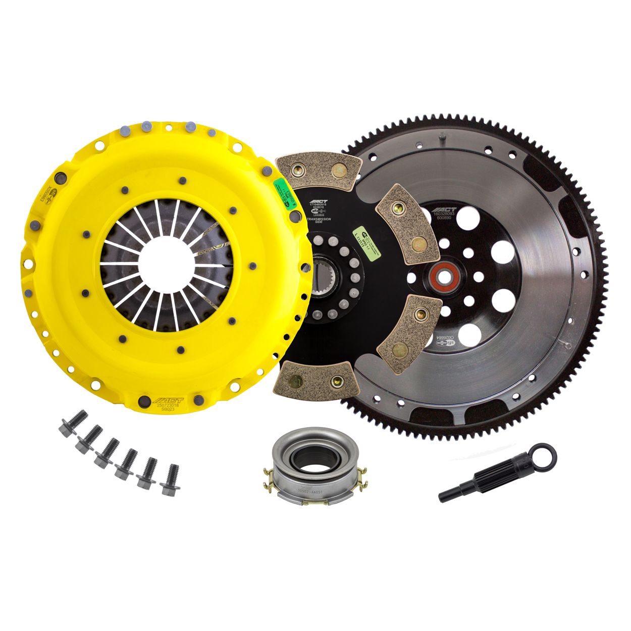 SB7-XTR6 kit features an Xtreme pressure plate for the most demanding driver. ACT Xtreme pressure plates use exclusive diaphragm design to increase clamp load, reduce deflection and maximize clutch life. All diaphragms endure a four-stage, heat-treating process for unparalleled performance. ACT pressure plates have precision cover stampings to provide rigidity and consistency. ACT's 6-pad rigid race discs are made with high quality, ceramic friction materials. The chrome-moly hub is heat-treated for strength and durability. The lightweight, rigid design allows for quicker shifts and smooth, trouble-free service. With the 6-pad rigid race disc, engagement is harsher, but shifting is faster. The 6-pad rigid race disc is recommended for larger clutch sizes to absorb more heat.