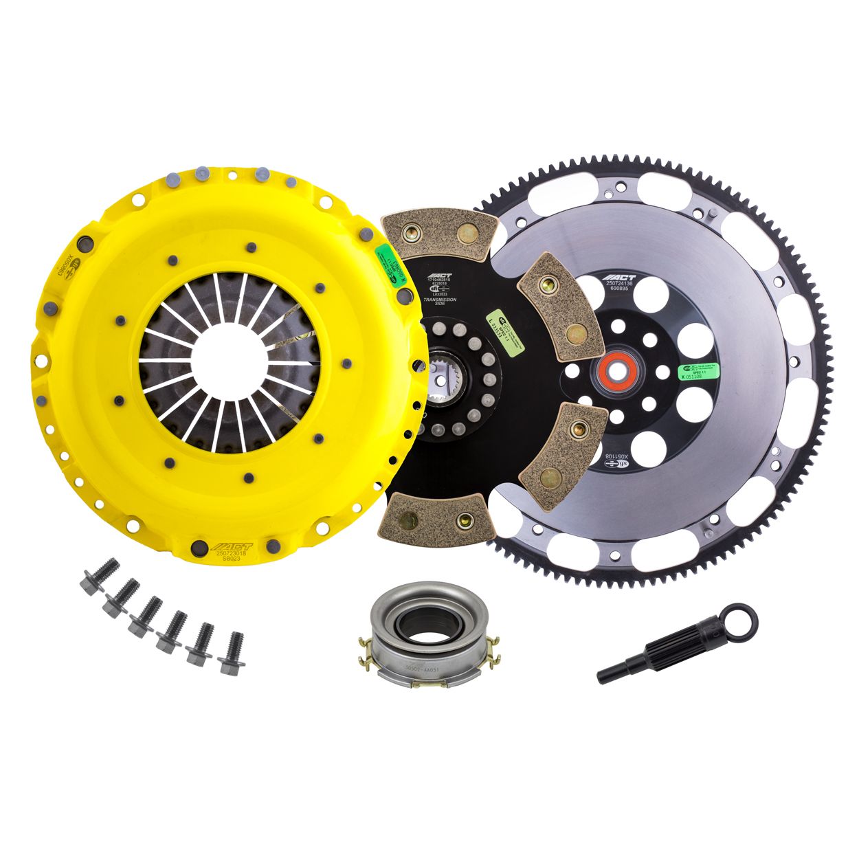SB8-XTR6 kit features an Xtreme pressure plate for the most demanding driver. ACT Xtreme pressure plates use exclusive diaphragm design to increase clamp load, reduce deflection and maximize clutch life. All diaphragms endure a four-stage, heat-treating process for unparalleled performance. ACT pressure plates have precision cover stampings to provide rigidity and consistency. ACT's 6-pad rigid race discs are made with high quality, ceramic friction materials. The chrome-moly hub is heat-treated for strength and durability. The lightweight, rigid design allows for quicker shifts and smooth, trouble-free service. With the 6-pad rigid race disc, engagement is harsher, but shifting is faster. The 6-pad rigid race disc is recommended for larger clutch sizes to absorb more heat.