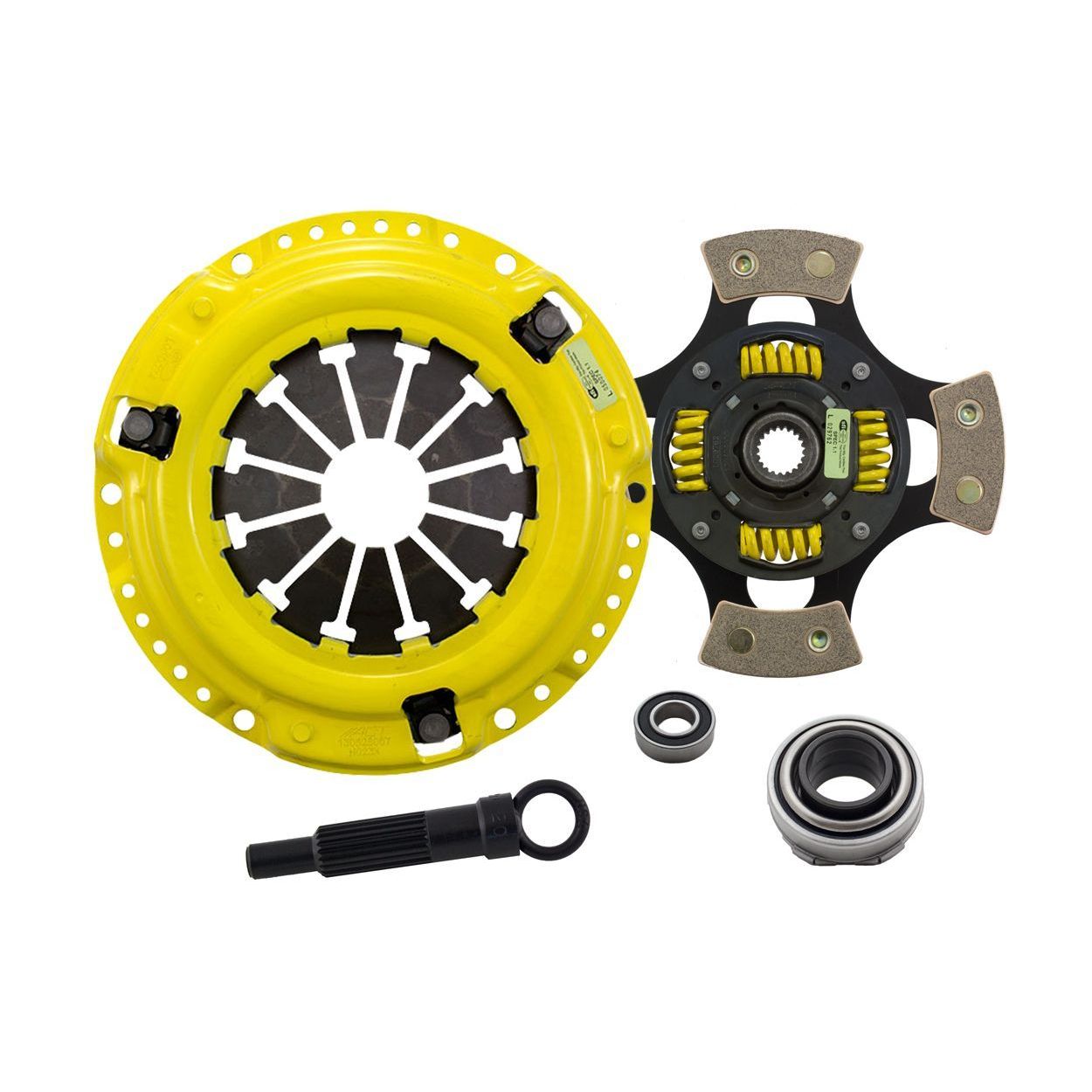 HC4-XTG4 kit features an Xtreme pressure plate for the most demanding driver. ACT Xtreme pressure plates use exclusive diaphragm design to increase clamp load, reduce deflection and maximize clutch life. All diaphragms endure a four-stage, heat-treating process for unparalleled performance. ACT pressure plates have precision cover stampings to provide rigidity and consistency. ACT's 4-pad spring-centered race disc features a spring-center construction to properly damp torsional vibrations for quieter operation and resist failure even under harsh conditions. ACT spring retainers utilize wraparound spring windows and thicker retainer stampings to provide spring support, reduce stress concentrations, and increase strength and reliability. With the 4-pad spring-centered race disc, engagement is harsher, but shifting is faster. ACT's 4-pad spring-centered race disc is well-suited for smaller disc sizes in smaller engines.