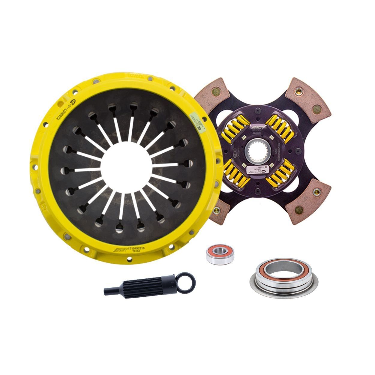TS2-XTG4 kit features an Xtreme pressure plate for the most demanding driver. ACT Xtreme pressure plates use exclusive diaphragm design to increase clamp load, reduce deflection and maximize clutch life. All diaphragms endure a four-stage, heat-treating process for unparalleled performance. ACT pressure plates have precision cover stampings to provide rigidity and consistency. ACT's 4-pad spring-centered race disc features a spring-center construction to properly damp torsional vibrations for quieter operation and resist failure even under harsh conditions. ACT spring retainers utilize wraparound spring windows and thicker retainer stampings to provide spring support, reduce stress concentrations, and increase strength and reliability. With the 4-pad spring-centered race disc, engagement is harsher, but shifting is faster. ACT's 4-pad spring-centered race disc is well-suited for smaller disc sizes in smaller engines.