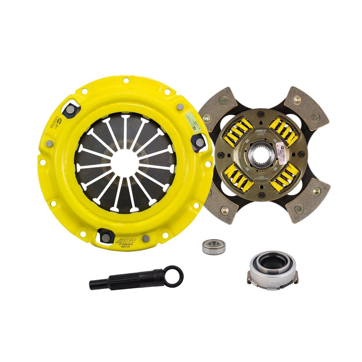 ZM2-XTG4 kit features an Xtreme pressure plate for the most demanding driver. ACT Xtreme pressure plates use exclusive diaphragm design to increase clamp load, reduce deflection and maximize clutch life. All diaphragms endure a four-stage, heat-treating process for unparalleled performance. ACT pressure plates have precision cover stampings to provide rigidity and consistency. ACT's 4-pad spring-centered race disc features a spring-center construction to properly damp torsional vibrations for quieter operation and resist failure even under harsh conditions. ACT spring retainers utilize wraparound spring windows and thicker retainer stampings to provide spring support, reduce stress concentrations, and increase strength and reliability. With the 4-pad spring-centered race disc, engagement is harsher, but shifting is faster. ACT's 4-pad spring-centered race disc is well-suited for smaller disc sizes in smaller engines.