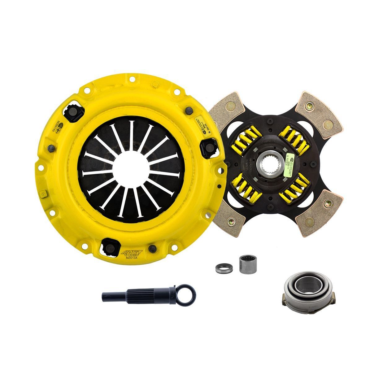ZX2-XTG4 kit features an Xtreme pressure plate for the most demanding driver. ACT Xtreme pressure plates use exclusive diaphragm design to increase clamp load, reduce deflection and maximize clutch life. All diaphragms endure a four-stage, heat-treating process for unparalleled performance. ACT pressure plates have precision cover stampings to provide rigidity and consistency. ACT's 4-pad spring-centered race disc features a spring-center construction to properly damp torsional vibrations for quieter operation and resist failure even under harsh conditions. ACT spring retainers utilize wraparound spring windows and thicker retainer stampings to provide spring support, reduce stress concentrations, and increase strength and reliability. With the 4-pad spring-centered race disc, engagement is harsher, but shifting is faster. ACT's 4-pad spring-centered race disc is well-suited for smaller disc sizes in smaller engines.