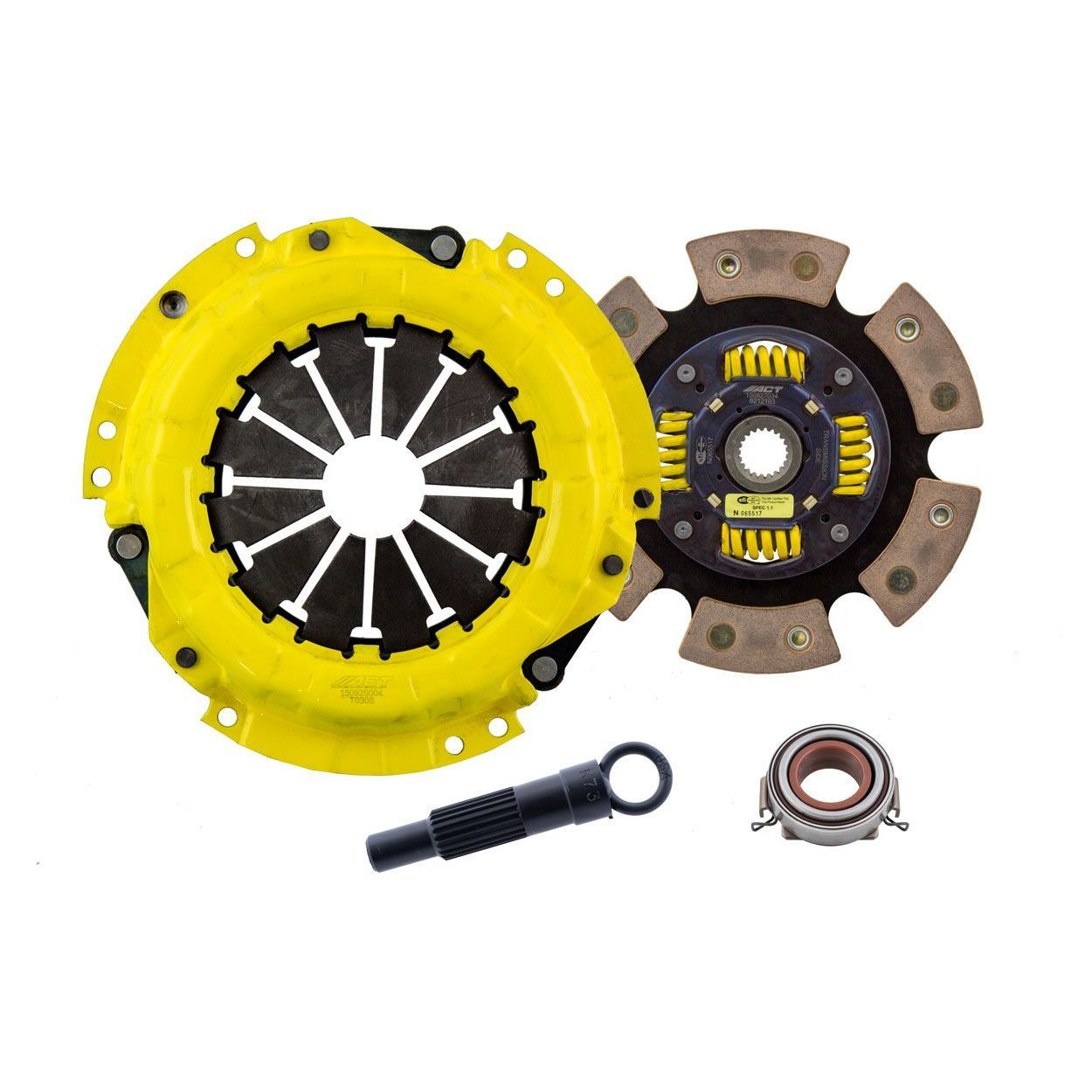 TC1-XTG6 kit features an Xtreme pressure plate for the most demanding driver. ACT Xtreme pressure plates use exclusive diaphragm design to increase clamp load, reduce deflection and maximize clutch life. All diaphragms endure a four-stage, heat-treating process for unparalleled performance. ACT pressure plates have precision cover stampings to provide rigidity and consistency. ACT's 6-pad spring-centered race disc features a spring-center construction to properly damp torsional vibrations and resist failure under harsh conditions. ACT spring retainers utilize wraparound spring windows and thicker retainer stampings to provide spring support, reduce stress concentrations, and increase strength and reliability. With the 6-pad spring-centered race disc, engagement is harsher, but shifting is faster. The 6-pad spring-centered disc is recommended for larger clutch sizes to absorb more heat.