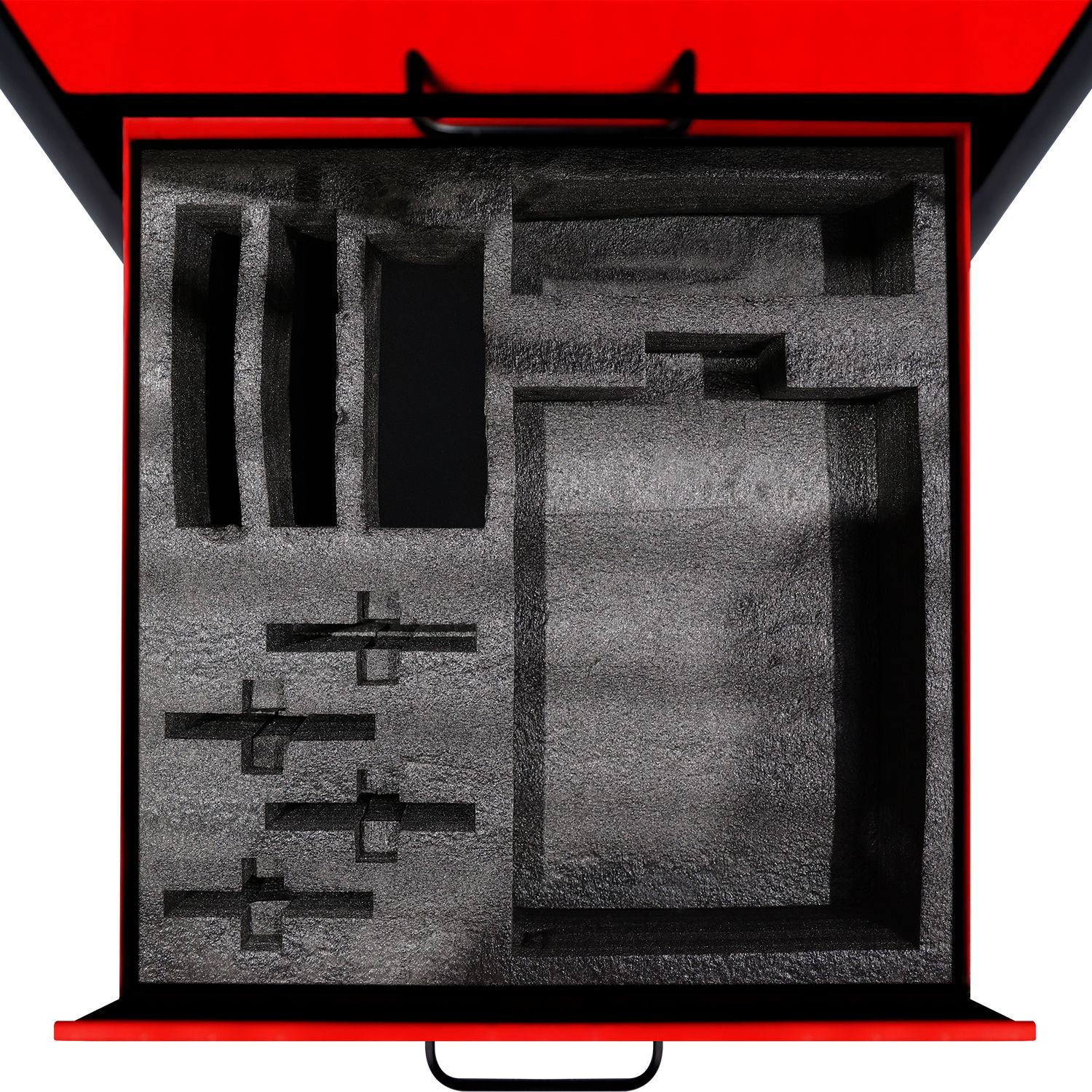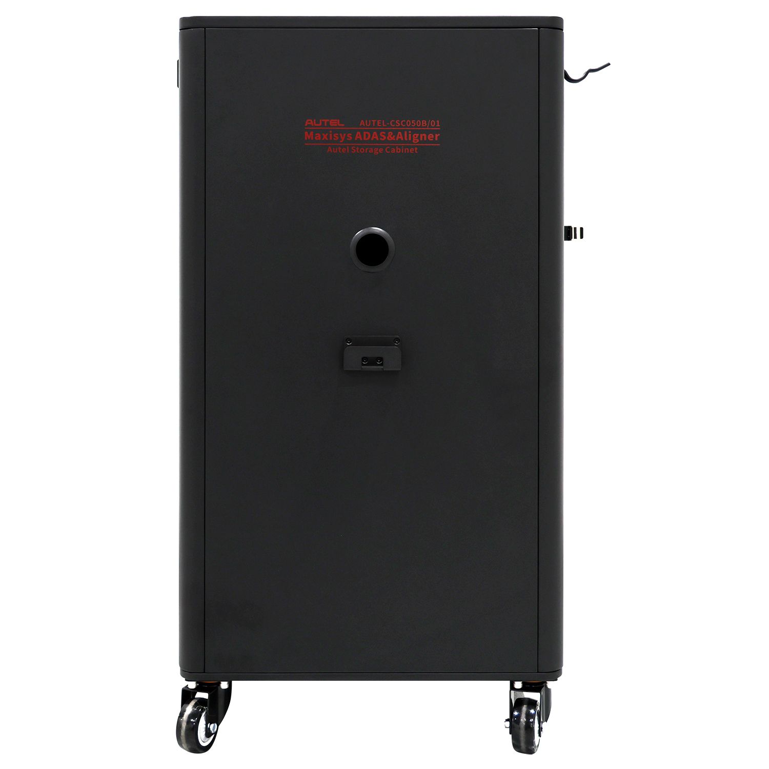 The Autel ADAS Accessory Storage Cabinet is perfect for safely storing your Autel ADAS calibration and alignment accessories. Purchase the optional Tire Clamp or Rim Clamp storage brackets to attach to the cabinet for convenient storage. The attractive yet sturdy Autel-branded metal cabinet features a large center storage space with a slide-out shelf, pull-up door, two additional storage drawers, and foam insert for storing clamp targets. The cabinet rests on four sturdy metal casters, allowing it to be moved easily through your shop. A one-year limited warranty covers the unit.