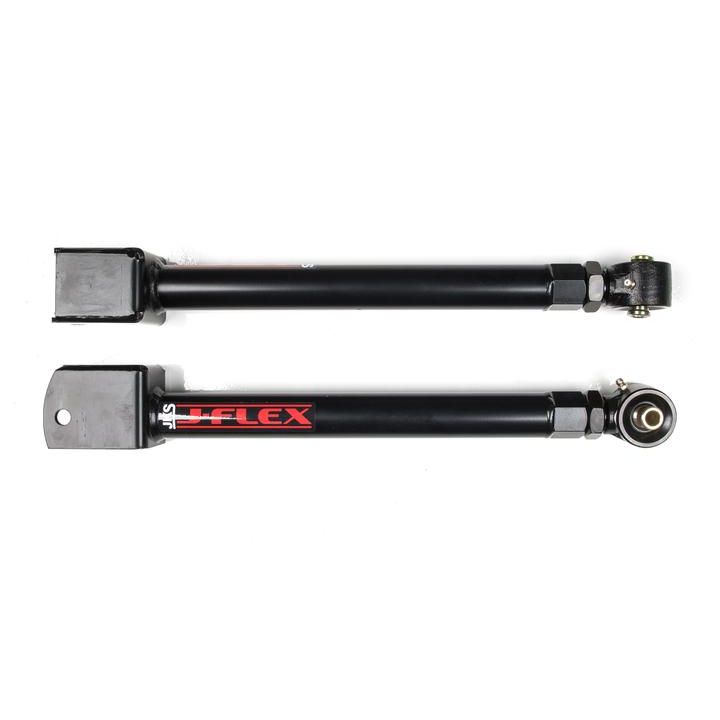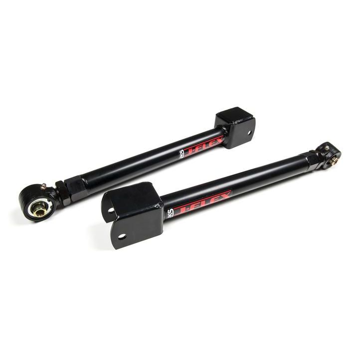 Upgrade your JK Wrangler's off-road capability with JKS J-Flex adjustable front upper Control Arms. CNC-bent from DOM tubing for proper tire, frame and axle mount clearance, J-Flex control arms feature forged "flex" ends that are adjustable. The design increases reliability and allows you to fine tune suspension geometry. The ends are also fully rebuildable and greaseable. With heavy duty 1/4"-12 threads and hex shaped weld-in threaded bung, tightening of the included jam nuts is super easy and secure. At the non-adjustable end, the mount is “boxed” for increased strength. Arms are powder-coated for a long-lasting finish. Sold in pairs.