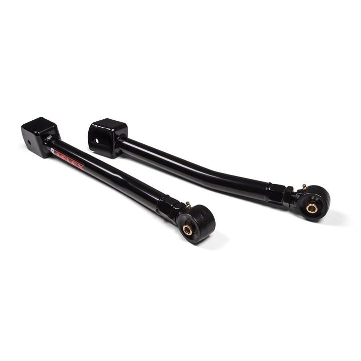 Enhance the ride quality and driving comfort of your Jeep Wrangler JL or Gladiator JT with JKS J-FLEX front upper adjustable control arms. They make it easy to dial in correct geometry and also provide added rigidity. Constructed of high strength DOM tubing, J-Flex arms feature robotically welded ends form maximum strength. At the frame side, a forged end is threaded in to allow ample adjustability to suit a wide range of ride heights from stock to 6" of lift. The forged ends allow 15 degrees of articulation in either direction and grease fittings allow for easy servicing. J-Flex arms come fully assembled right out of the box finished in a gloss black powder coat. Sold in pairs.