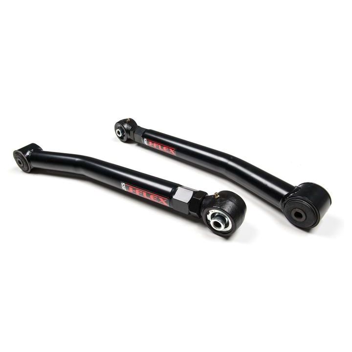 Upgrade your Jeep Wrangler JK’s performance and reliability with JKS J-Flex adjustable front lower control arms. CNC-bent from stout DOM tubing, the fully adjustable design allows you to fine-tune suspension geometry. The ends are also fully rebuildable and greaseable. With heavy duty 1-1/4"-12 threads and hex shaped weld-in bungs, tightening of the included jam nuts is super easy and secure. At the non-adjustable end, factory style rubber bushings provide quiet, maintenance-free operation. Arms are powder-coated for a long-lasting finish. Sold in pairs.
