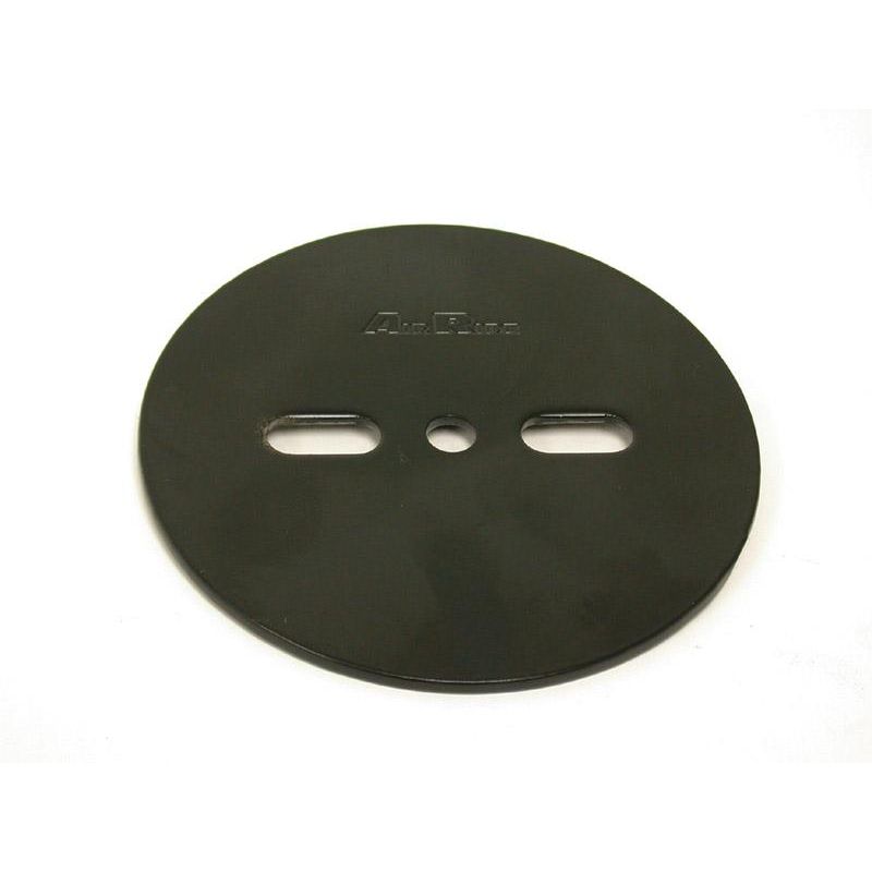 Air spring patten plate, centered, 1/8" thick x 5.5" O.D. Powder coated black.