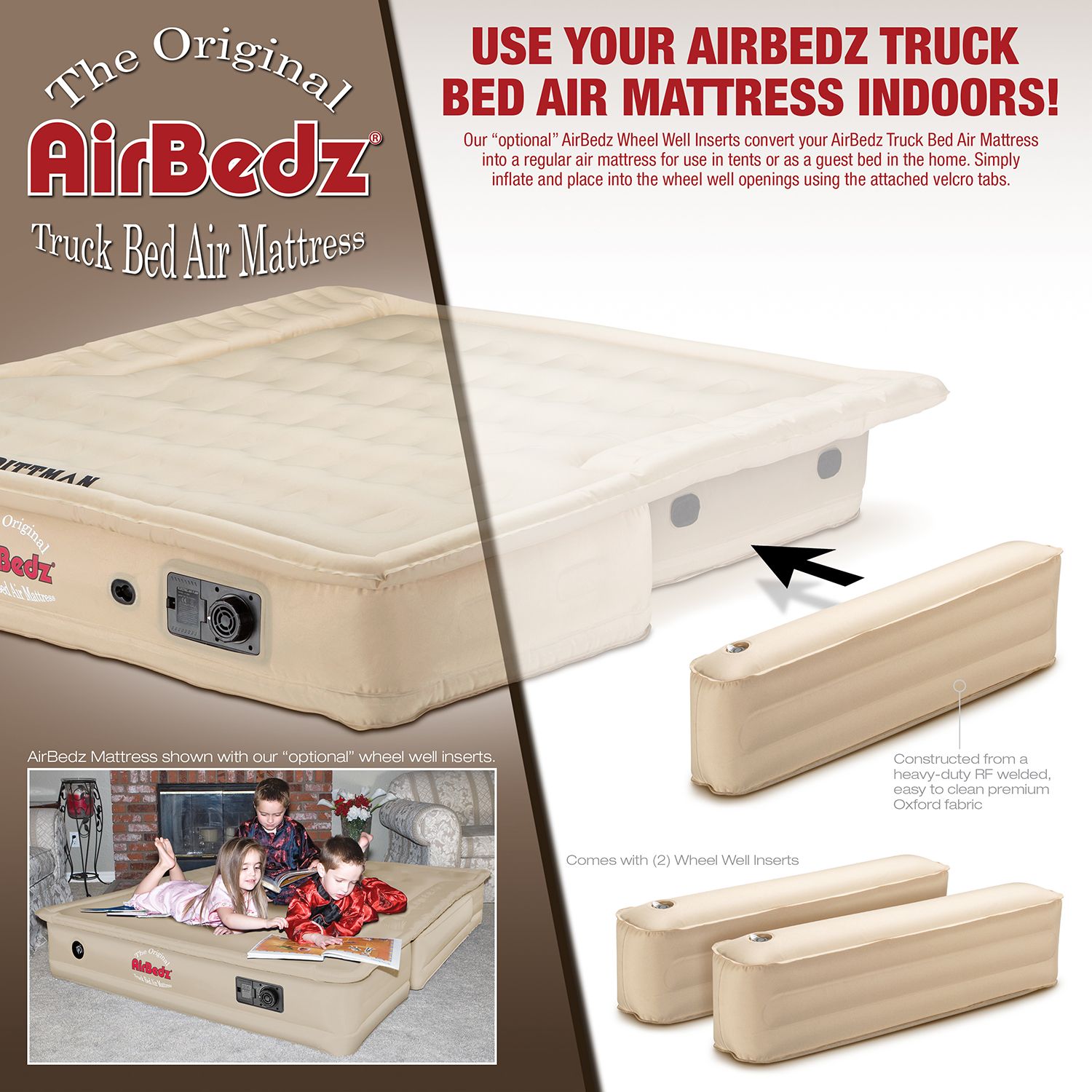 Now in Tan – AirBedz Inflatable Wheel Well Inserts, designed to fit mattress: PPI-505 only. AirBedz Wheel Well Inserts convert your AirBedz mattress into a regular air mattress for use in tents or as a guest bed in the home. Simply inflate and place into the wheel well openings using the attached Velcro tabs. (mattress sold separate)