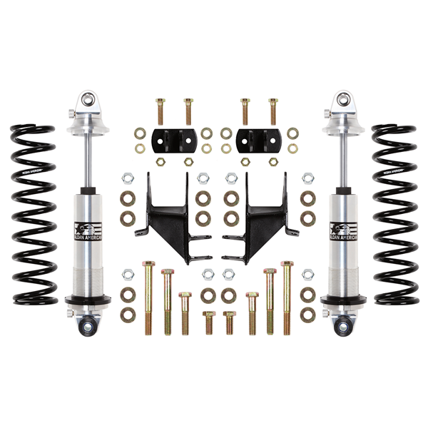 Coil-Over Kit, Buick, Chevy, Olds, Pontiac, Rear, Double Adj. 160 lbs. Springs. Bolt in kit converts stock suspension to coil-over suspension. Includes 2 Striker Series coil-overs, 2 coil-springs, hardware, TIG welded bracketry. Made in USA