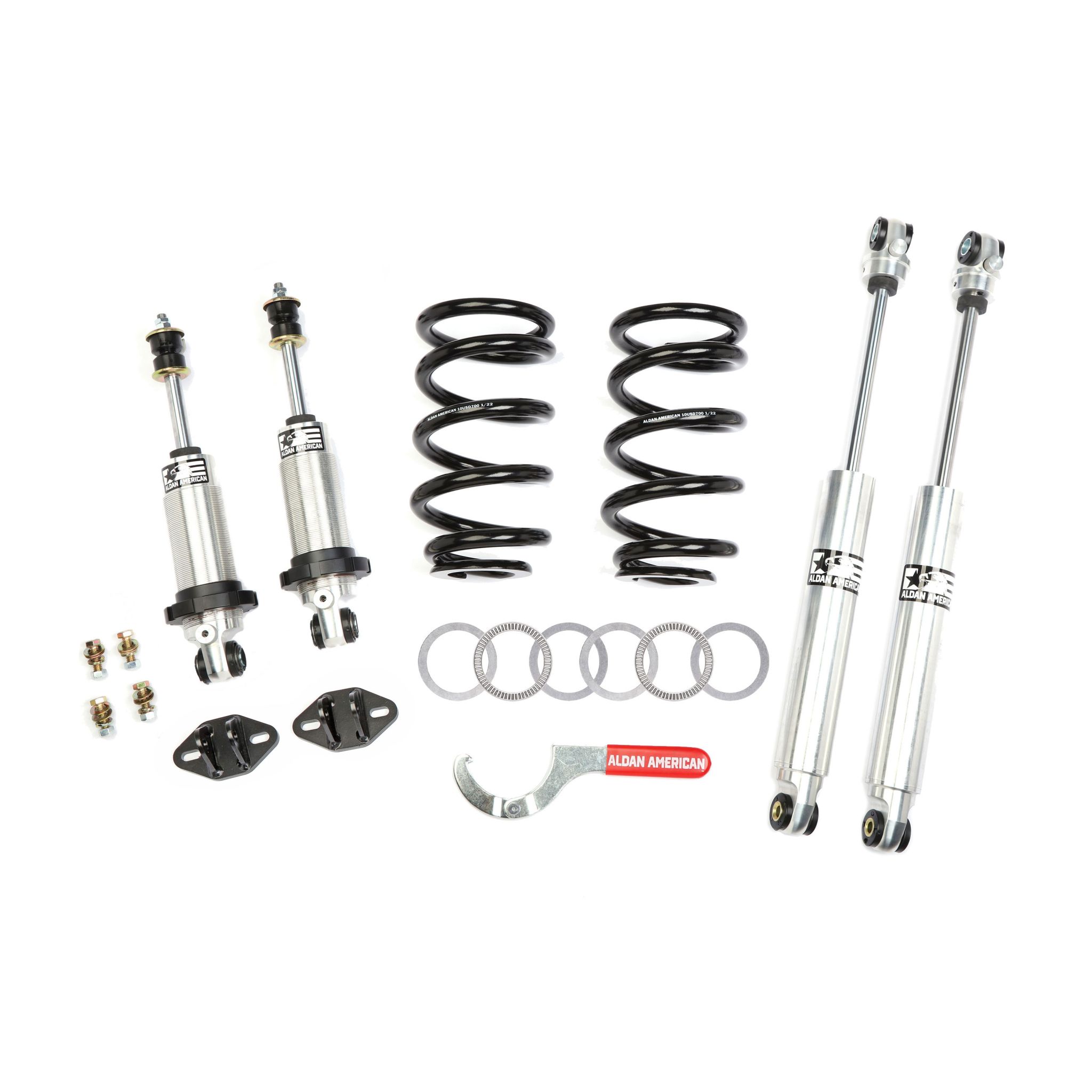 Suspension Package, Road Comp, GM, 63-65, Riviera, Single Adjustable. Front coilovers with rear shocks. Includes 2 front coilovers with 750 lb springs, 2 TruLine rear, adjustable shocks with hardware. Bolt on. Front and Rear. Made in USA