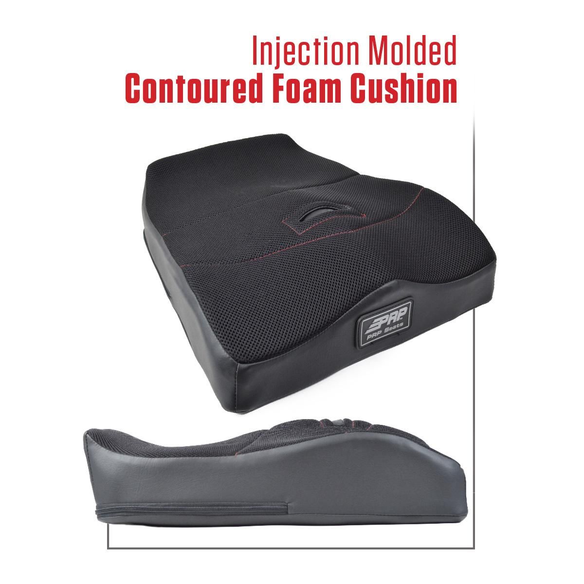 PRP’s Alpha Seat Cushion can improve the comfort of most composite race seats. Instead of a thin piece of cut foam, the Alpha Seat Cushion provides you with a thicker, more shock absorbant pad making those long distance rides or races more bearable.