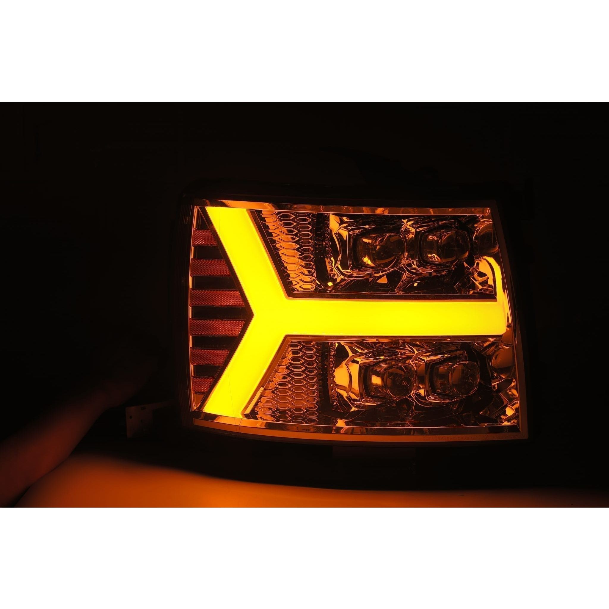 Description: LED Projector Headlights Plank Style Design Chrome w/ Activation light and Sequential Signal