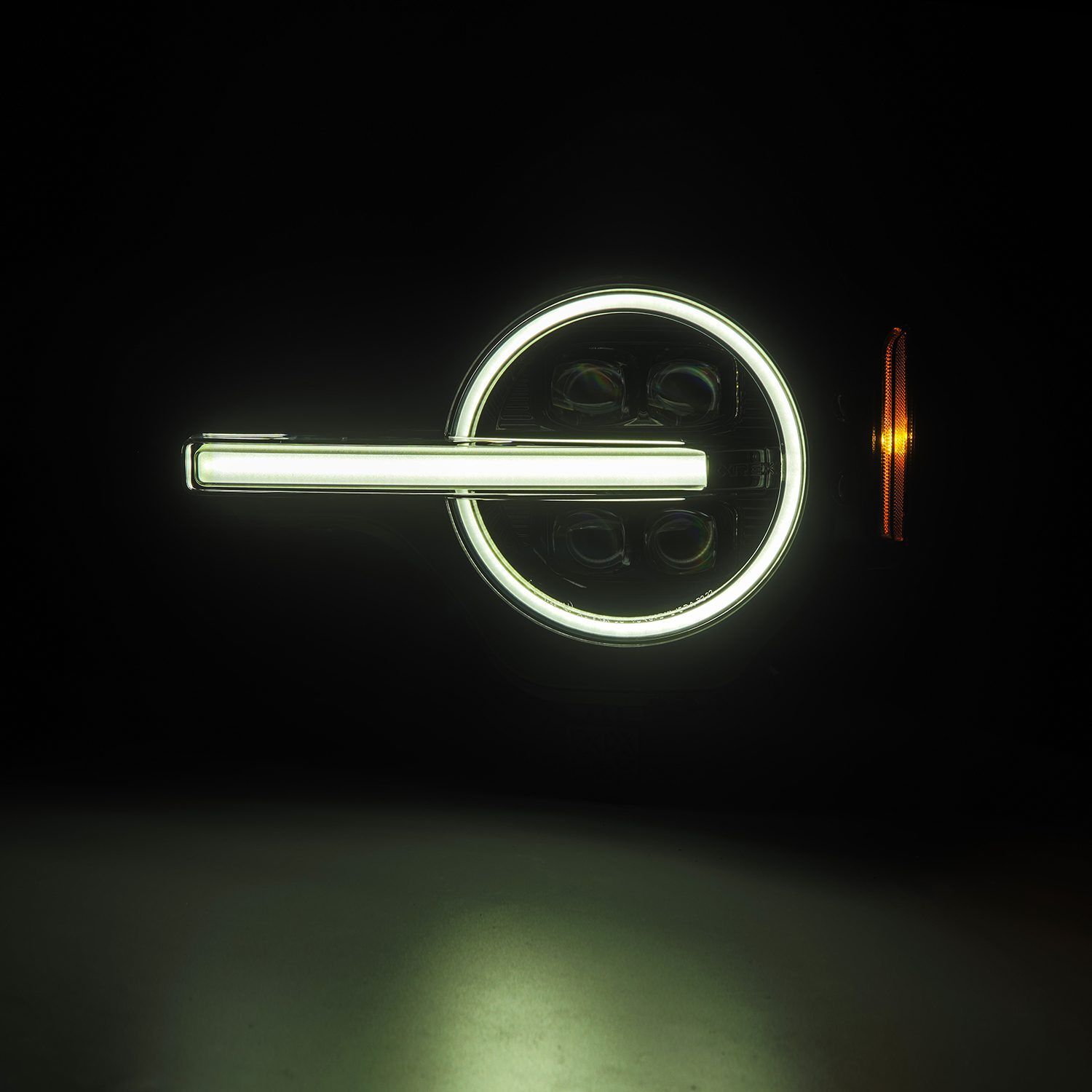 Description: LED Projector Headlights Alpha-Black w/ Activation Light/ sequential signal & Switchback DRL
