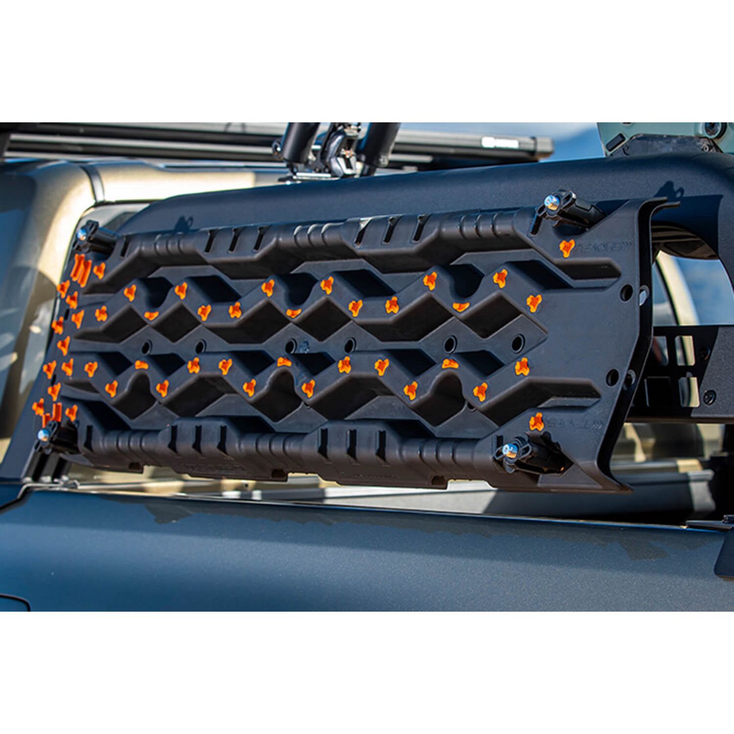 Suitable for TRED and other recovery boards, the Bed Rack Recovery Board Mounts allow for 4 recovery boards to be mounted to the Bed Rack side channel.
