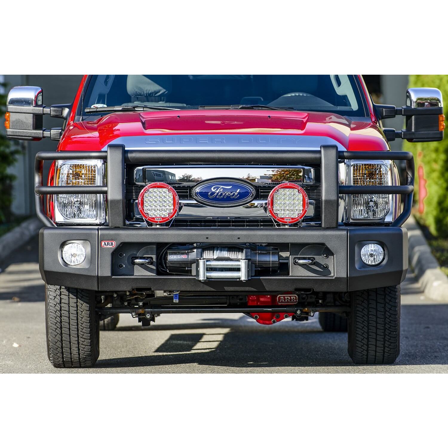 Modern in styling yet distinctively ARB in heritage, these Modular Bumpers are truly innovative and utilize a modular design. Three distinct configurations are available for select Chevrolet, Ford and Ram trucks, allowing for customization to meet individual needs or preferences. The integrated features were designed from the ground up as shown by the unique press formed fog light housings, the ability to mount a variety of winches (up to a Warn 16.5ti) within the bumper and our proprietary matte black Integrit finish powder coat. Modular Bumpers configurations include a base style bumper replacement which is an ideal winch platform. From there, you can select the Sahara style which adds an upright hoop to guard the truck's grille and critical components. Finally, the Full Deluxe Modular Bumper adds wing frames providing the highest level of protection for the truck and occupants.