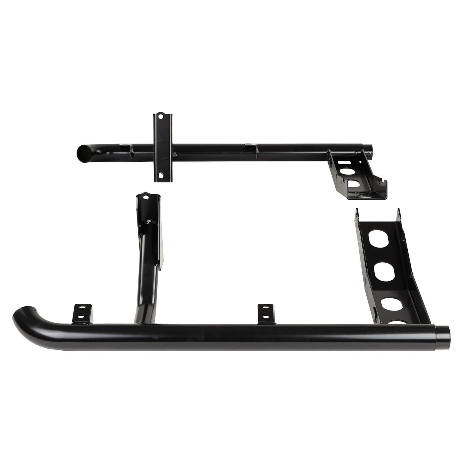 Side rail and combination steps to protect the front quarter panels and lower sills. The integrated step offers improved vehicle access. While they offer an excellent barrier against rock ledges, they are not considered a true rock slider that might be required for aggressive rock crawling.