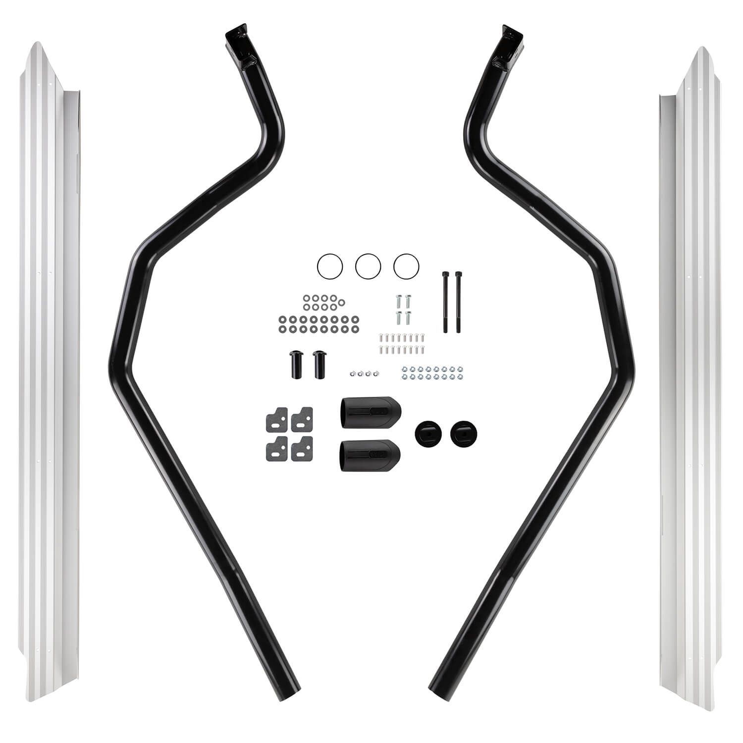 Side rail and combination steps to protect the front quarter panels and lower sills. The integrated step offers improved vehicle access. While they offer an excellent barrier against rock ledges, they are not considered a true rock slider that might be required for aggressive rock crawling.