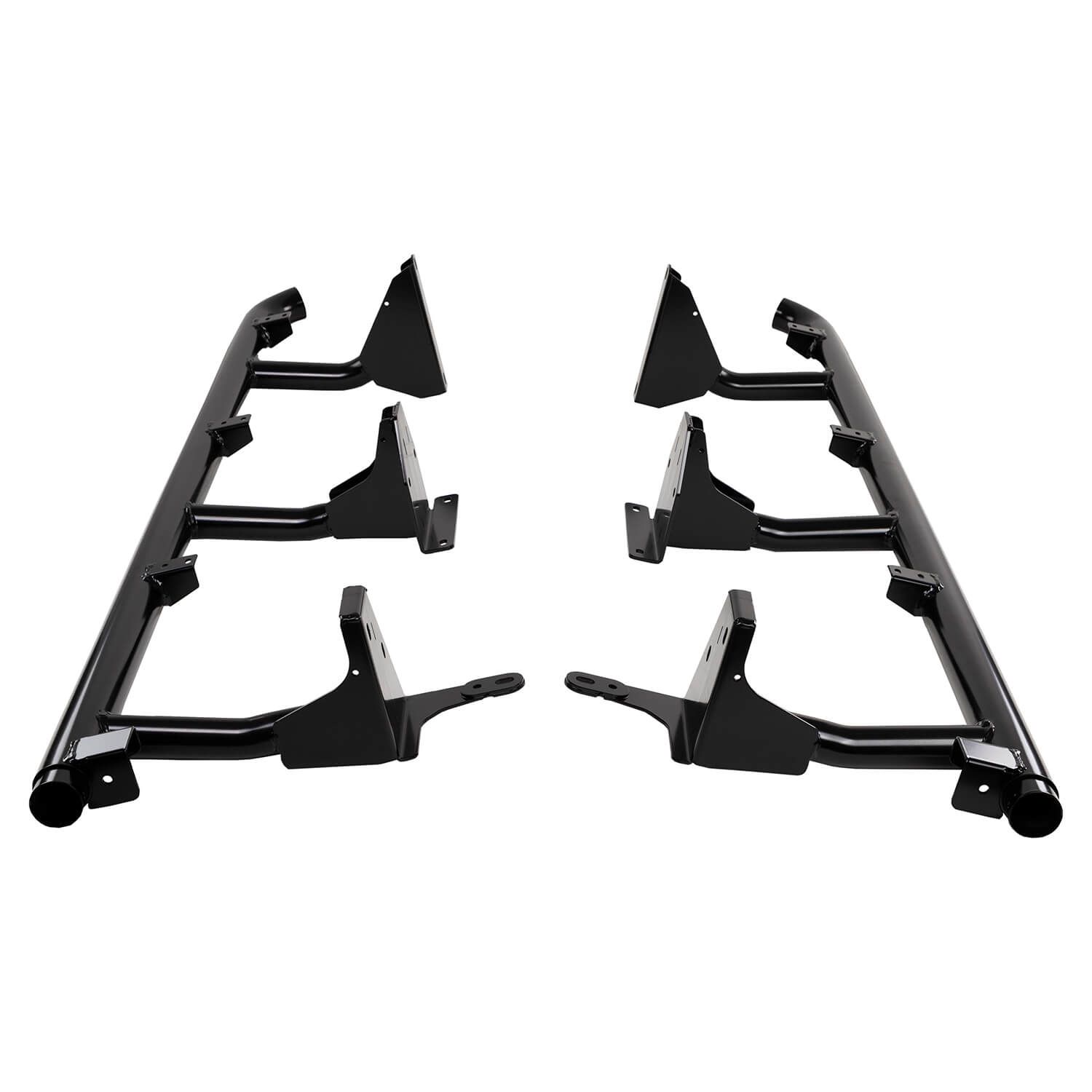 Side rail and combination steps to protect the front quarter panels and lower sills. The integrated step offers improved vehicle access. While they offer an excellent barrier against rock ledges, they are not considered a true rock slider that might be required for aggressive rock crawling.