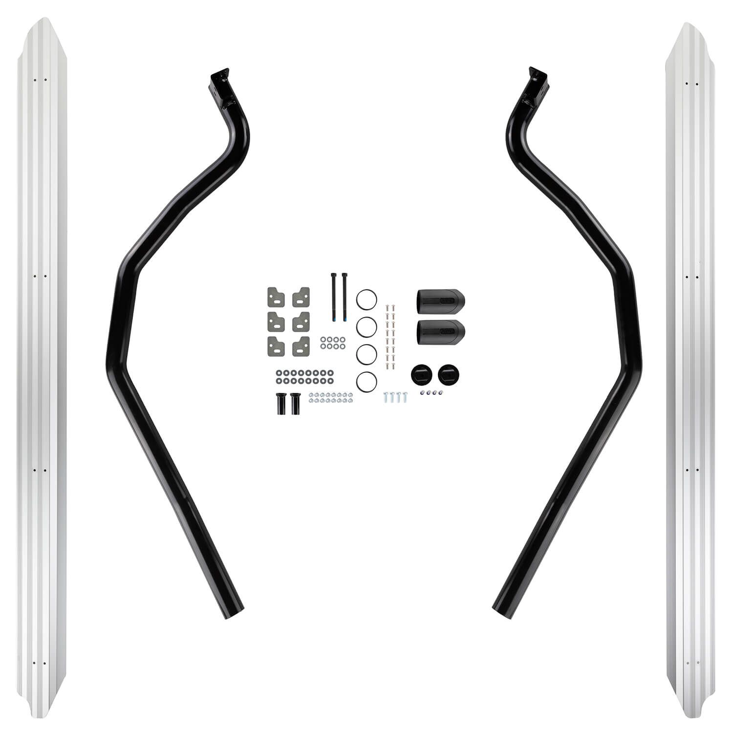 Side rail and combination steps to protect the front quarter panels and lower sills. The integrated step offers improved vehicle access. While they offer an excellent barrier against rock ledges, they are not considered a true rock slider that might be required for aggressive rock crawling.