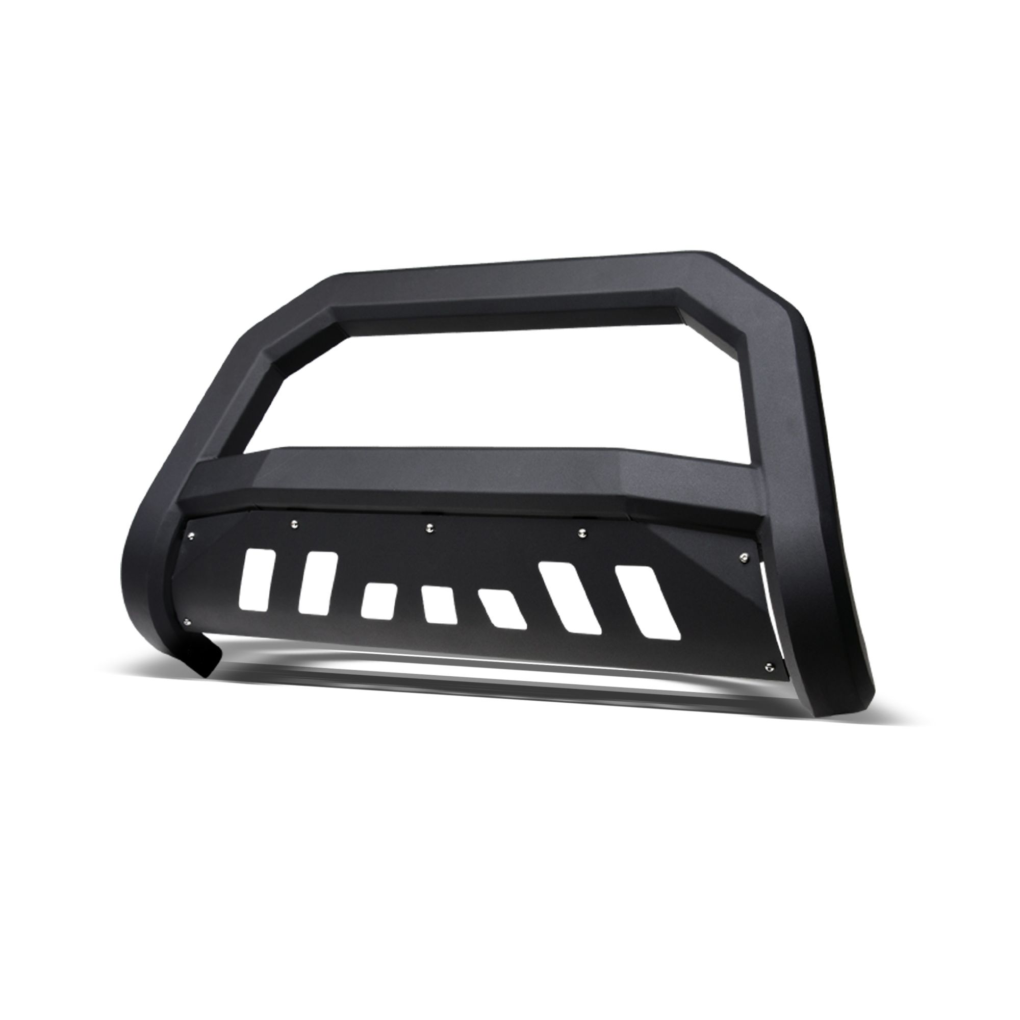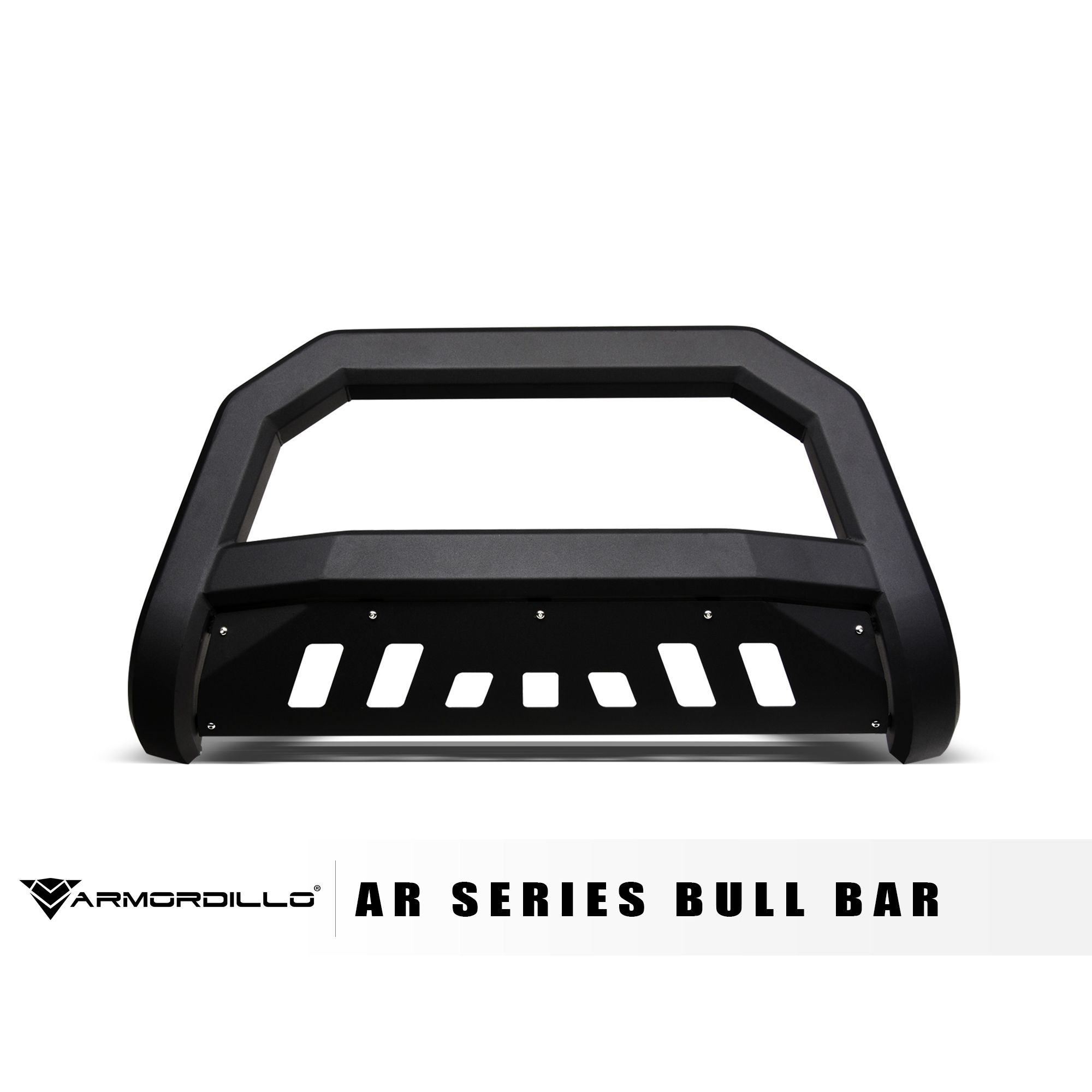 Armordillo AR Series Bull Bar, If you're looking to protect the front end of your rig against the elements and impact of minor collisions without sacrificing the look of your new stylish front grille, the AR series bull bar with its aggressive angular design is just the thing you need. Unlike regular tubular bull bars, Armordillo AR series bull bars will not hide your front grille or a large portion of your front bumper, while keeping the front-end protection at a high level. Plus, the mesh styled skid plate doesn't restrict airflow to the radiator and engine preventing its overheating. Arm your off-road beast with Armordillo, an industry-leading manufacturer of top-of-the-line truck accessories and parts. Years of ingenious engineering and passion for the world's toughest trucks has been poured out into providing hardcore off-road products designed to turn your beefy companion into the embodiment of sleekness, edginess, and aggression. Armordillo offers bull bars, step bars, fender flares, truck bed rails, trailer hitches and some of its unique products. Pre-Runner bumper guards, AR drop steps, lockers, and bull bars. You can count on Armordillo to bring you impeccably strong and durable parts combining brutal appeal with high-end elegance. The brand's bull bars, grilles, fender flares and side step bars are a sure way to instantly give your off-road warrior a more sharp, mean look along with unmatched comfort and protection against the rage of the trails. So, if you are looking to improve your vehicle's stance and fortify its defenses to own the dust with confidence, Armordillo is the answer to all your needs.