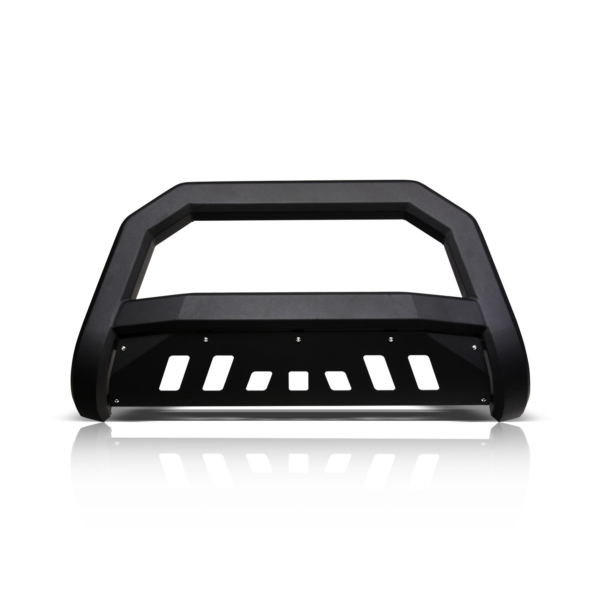 Armordillo AR Series Bull Bar, If you're looking to protect the front end of your rig against the elements and impact of minor collisions without sacrificing the look of your new stylish front grille, the AR series bull bar with its aggressive angular design is just the thing you need. Unlike regular tubular bull bars, Armordillo AR series bull bars will not hide your front grille or a large portion of your front bumper, while keeping the front-end protection at a high level. Plus, the mesh styled skid plate doesn't restrict airflow to the radiator and engine preventing its overheating. Arm your off-road beast with Armordillo, an industry-leading manufacturer of top-of-the-line truck accessories and parts. Years of ingenious engineering and passion for the world's toughest trucks has been poured out into providing hardcore off-road products designed to turn your beefy companion into the embodiment of sleekness, edginess, and aggression. Armordillo offers bull bars, step bars, fender flares, truck bed rails, trailer hitches and some of its unique products. Pre-Runner bumper guards, AR drop steps, lockers, and bull bars. You can count on Armordillo to bring you impeccably strong and durable parts combining brutal appeal with high-end elegance. The brand's bull bars, grilles, fender flares and side step bars are a sure way to instantly give your off-road warrior a more sharp, mean look along with unmatched comfort and protection against the rage of the trails. So, if you are looking to improve your vehicle's stance and fortify its defenses to own the dust with confidence, Armordillo is the answer to all your needs.