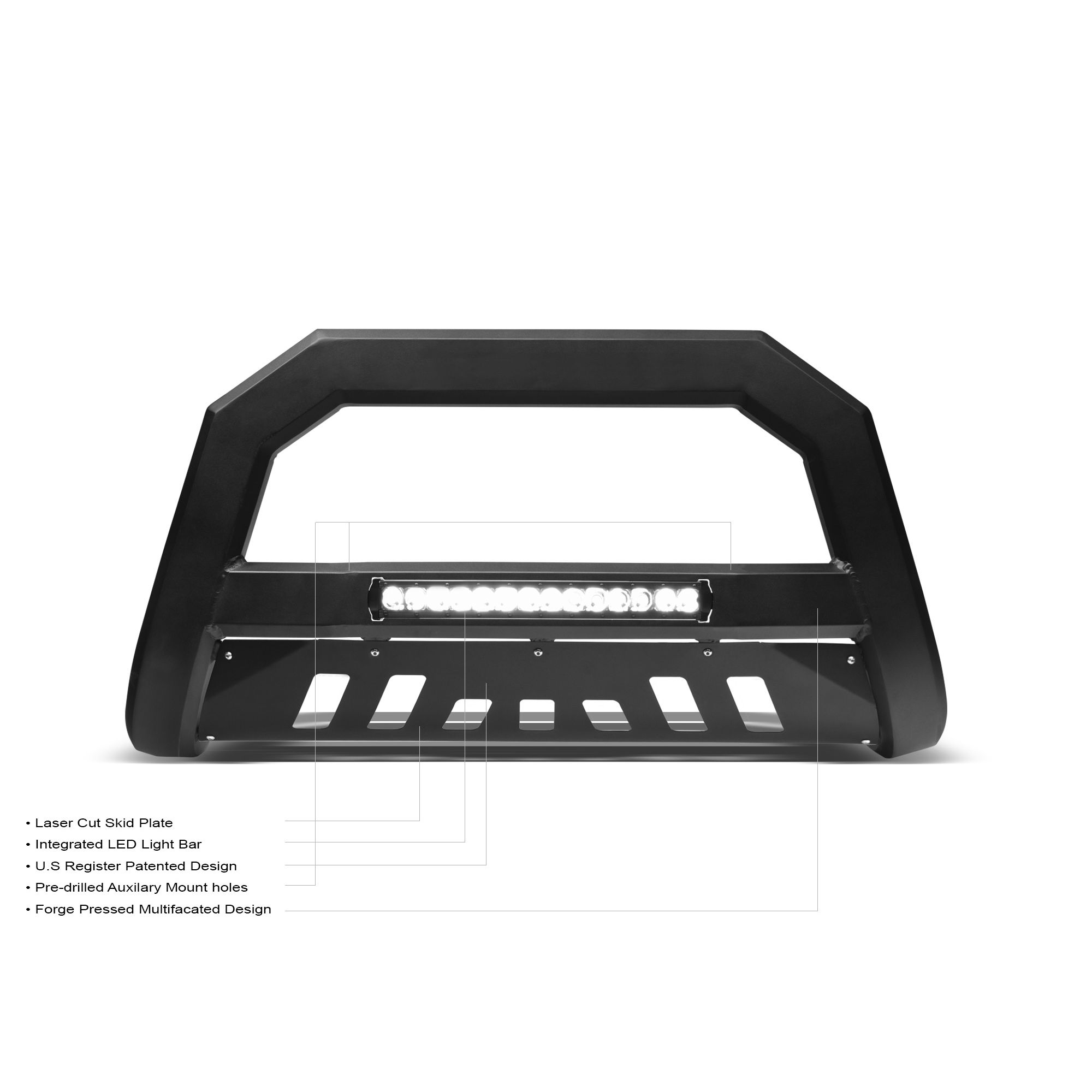 Armordillo 2008-2011 Mazda Tribute AR Series Bull Bar W/LED – Matte Black W/Aluminum Skid Plate