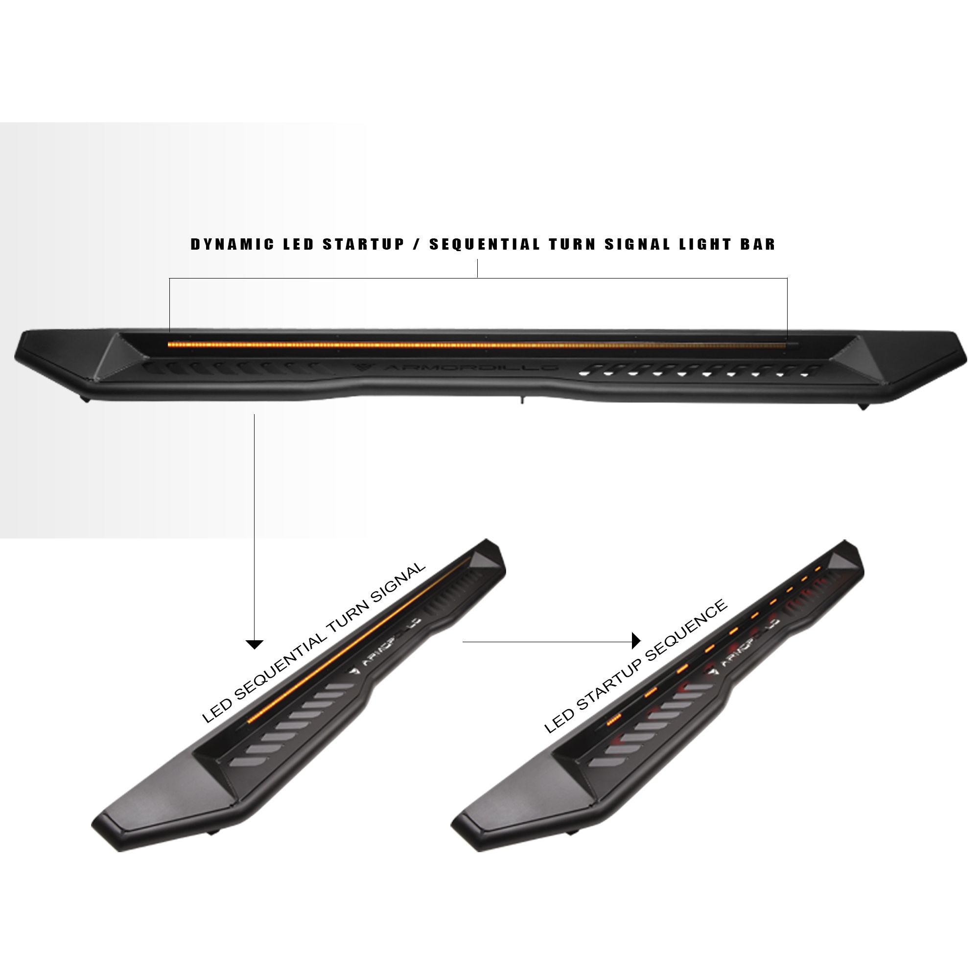 Armordillo® FX Series Running Boards w/LED are more than just a place to plant your foot to get in and out of your rig. They combine an ergonomic construction, ultimate durability and an eye-catching design that will turn heads and make your vehicle stand out from the crowd. While perfectly serving their primary purpose of helping you reach your vehicle’s cab, they complement your ride an aggressive look for your four-wheeler. They feature a multi-function LED Strip which will illuminate your steps with an idle function, start up sequence, and sequential turn signal function. Easy to bolt on to the frame with no drilling required, the FX running boards leave nothing to be desired from any other boards out on the market.