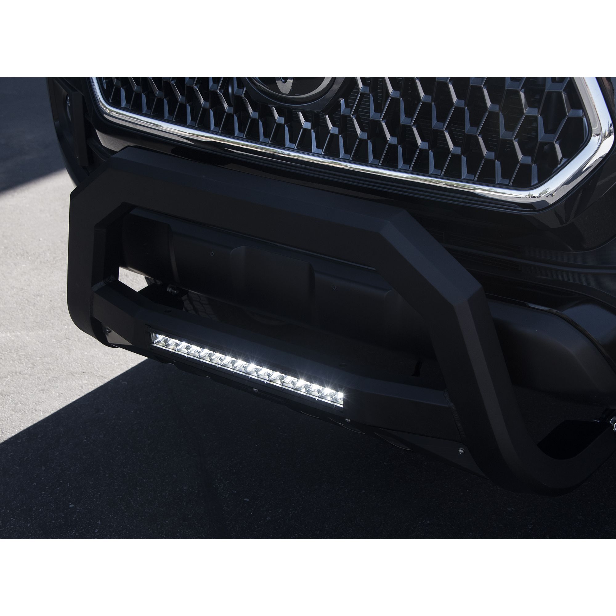 Armordillo AR Series Bull Bar, If you're looking to protect the front end of your rig against the elements and impact of minor collisions without sacrificing the look of your new stylish front grille, the AR series bull bar with its aggressive angular design is just the thing you need. Unlike regular tubular bull bars, Armordillo AR series bull bars will not hide your front grille or a large portion of your front bumper, while keeping the front-end protection at a high level. Plus, the mesh styled skid plate doesn't restrict airflow to the radiator and engine preventing its overheating. Arm your off-road beast with Armordillo, an industry-leading manufacturer of top-of-the-line truck accessories and parts. Years of ingenious engineering and passion for the world's toughest trucks has been poured out into providing hardcore off-road products designed to turn your beefy companion into the embodiment of sleekness, edginess, and aggression. Armordillo offers bull bars, step bars, fender flares, truck bed rails, trailer hitches and some of its unique products. Pre-Runner bumper guards, AR drop steps, lockers, and bull bars. You can count on Armordillo to bring you impeccably strong and durable parts combining brutal appeal with high-end elegance. The brand's bull bars, grilles, fender flares and side step bars are a sure way to instantly give your off-road warrior a more sharp, mean look along with unmatched comfort and protection against the rage of the trails. So, if you are looking to improve your vehicle's stance and fortify its defenses to own the dust with confidence, Armordillo is the answer to all your needs.