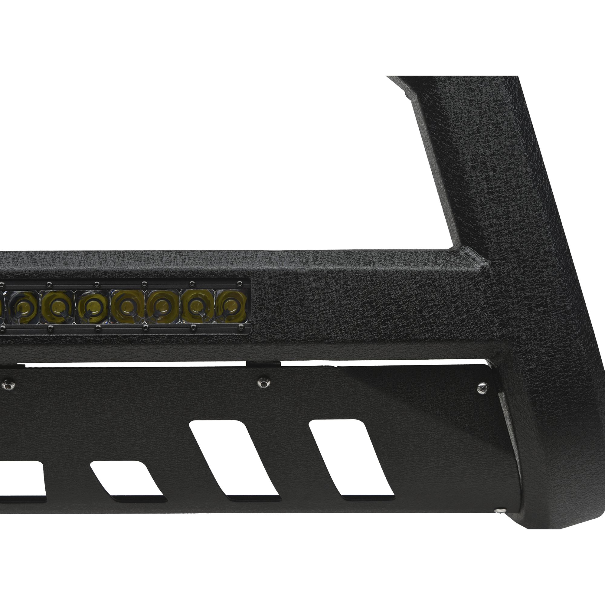 Armordillo 2019-2021 Chevy Silverado 1500 / 2019-2021 GMC Sierra 1500 AR Bull Bar w/LED – Matte Black w/ Aluminum Skid Plate.