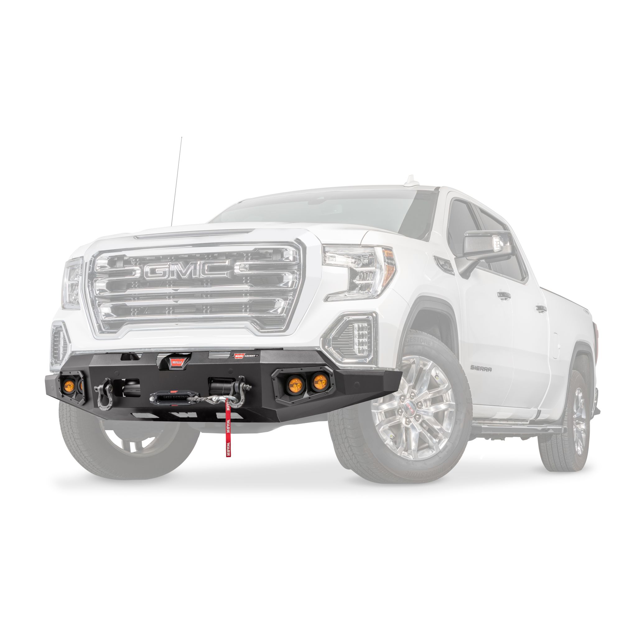 Ascent Front Bumper for GMC Sierra 1500 featuring an integral winch mount for WARN mid-frame winches