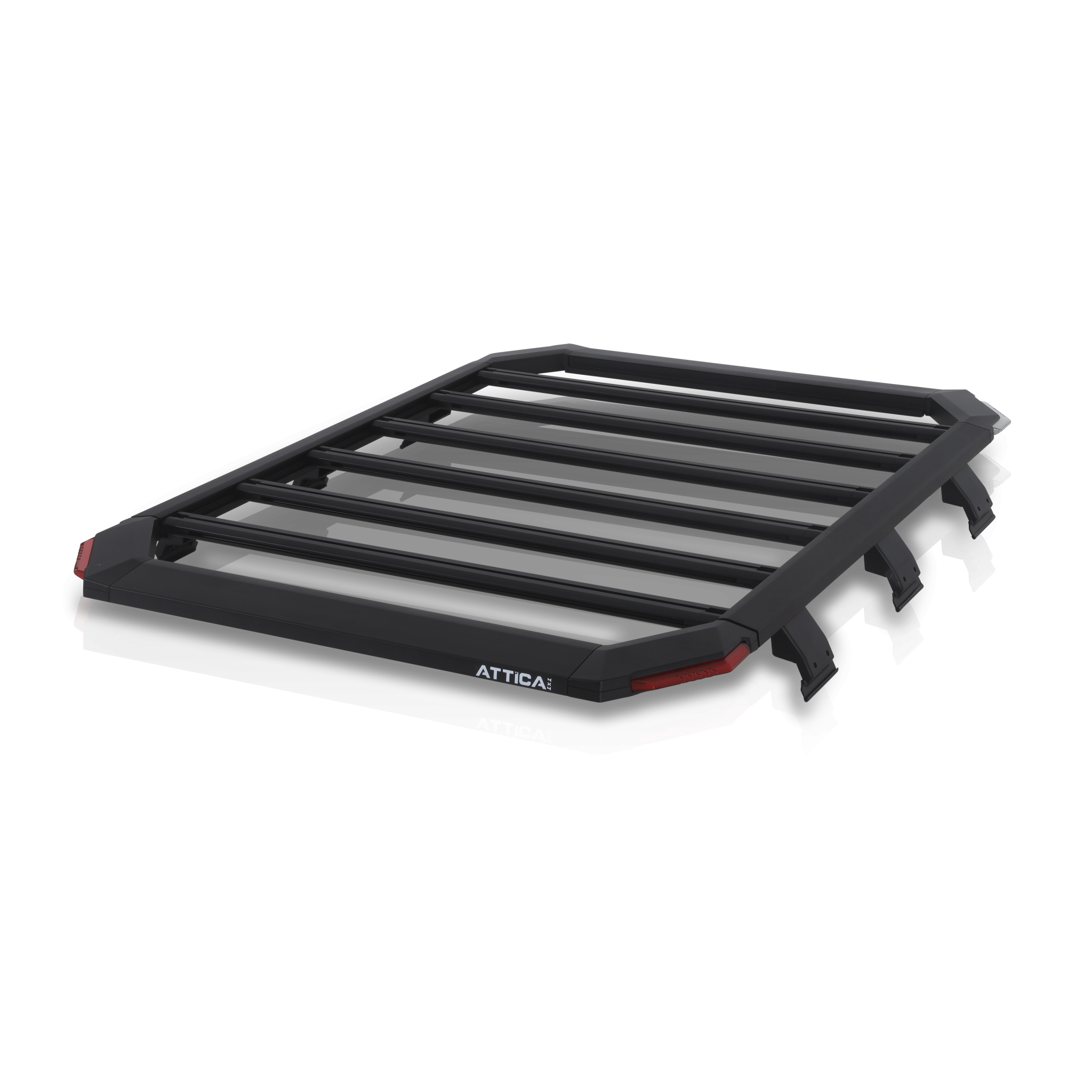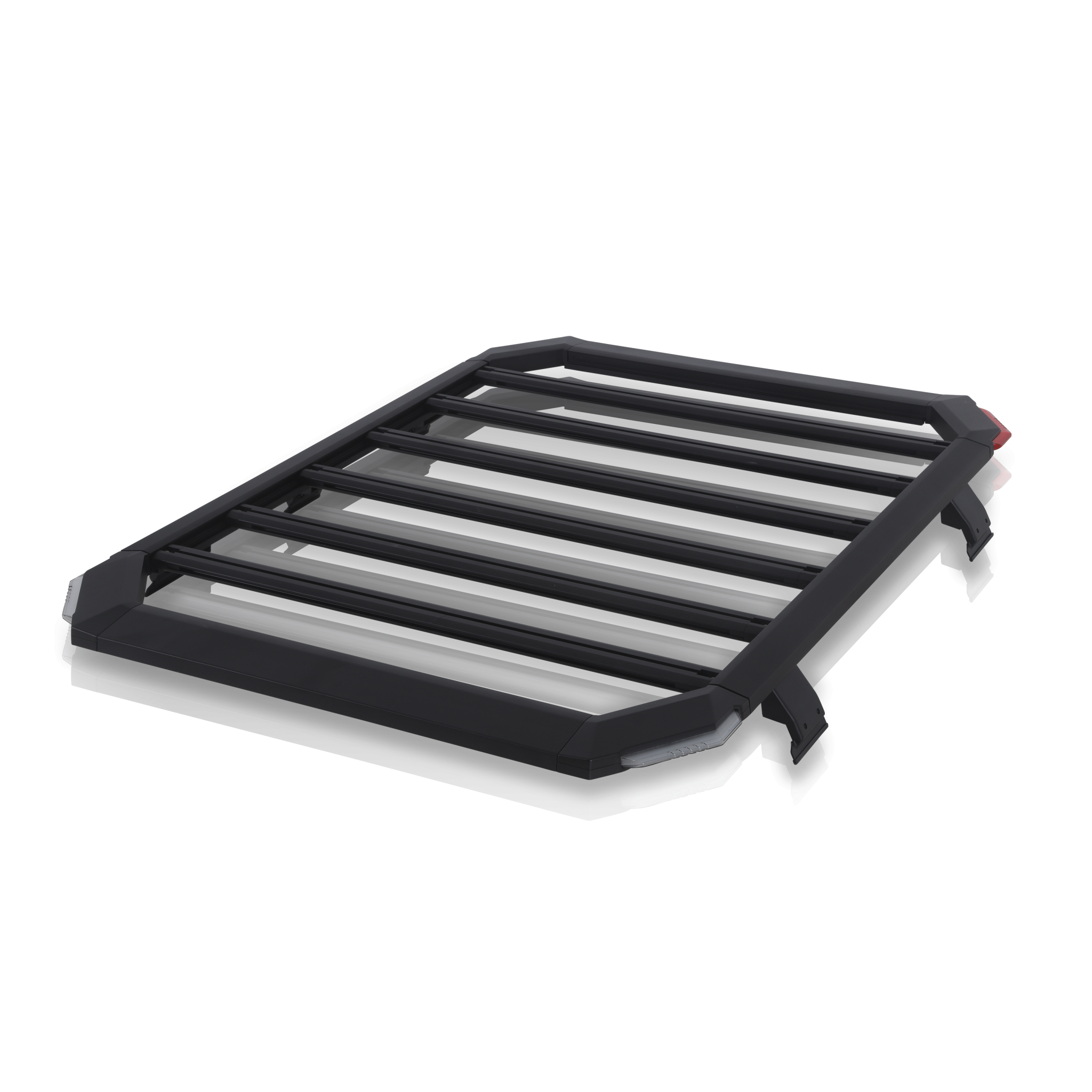 The Frontier Series Roof Rack is an ideal solution for any off-road adventure enthusiast looking to transport equipment and gear with style and functionality. This roof rack is made of high-quality, durable steel to withstand tough terrains and weather conditions. The low profile design of the Frontier Series Roof Rack provides a sleek, aerodynamic look that doesn't compromise on the roof's clearance. This ensures that it fits seamlessly with the vehicle's body and enhances its overall appearance. To ensure optimal visibility and safety during travel, the Frontier Series Roof Rack comes equipped with front and rear LED lighting, including turn signals. This lighting system illuminates the road ahead and provides signals to other drivers, enhancing the vehicle's overall safety. The Frontier Series Roof Rack's aesthetic is both strong and stylish, with an eye-catching design that is sure to turn heads.