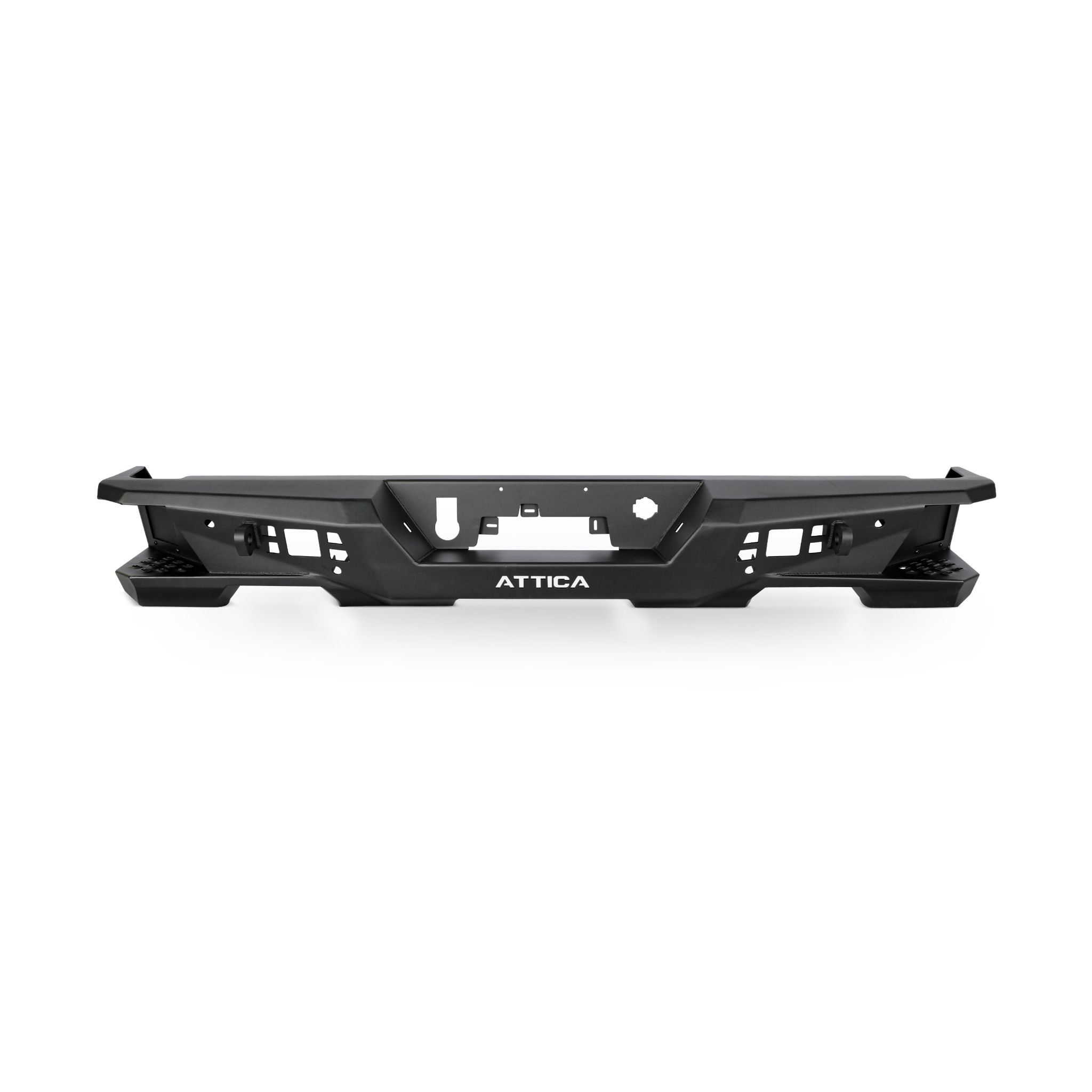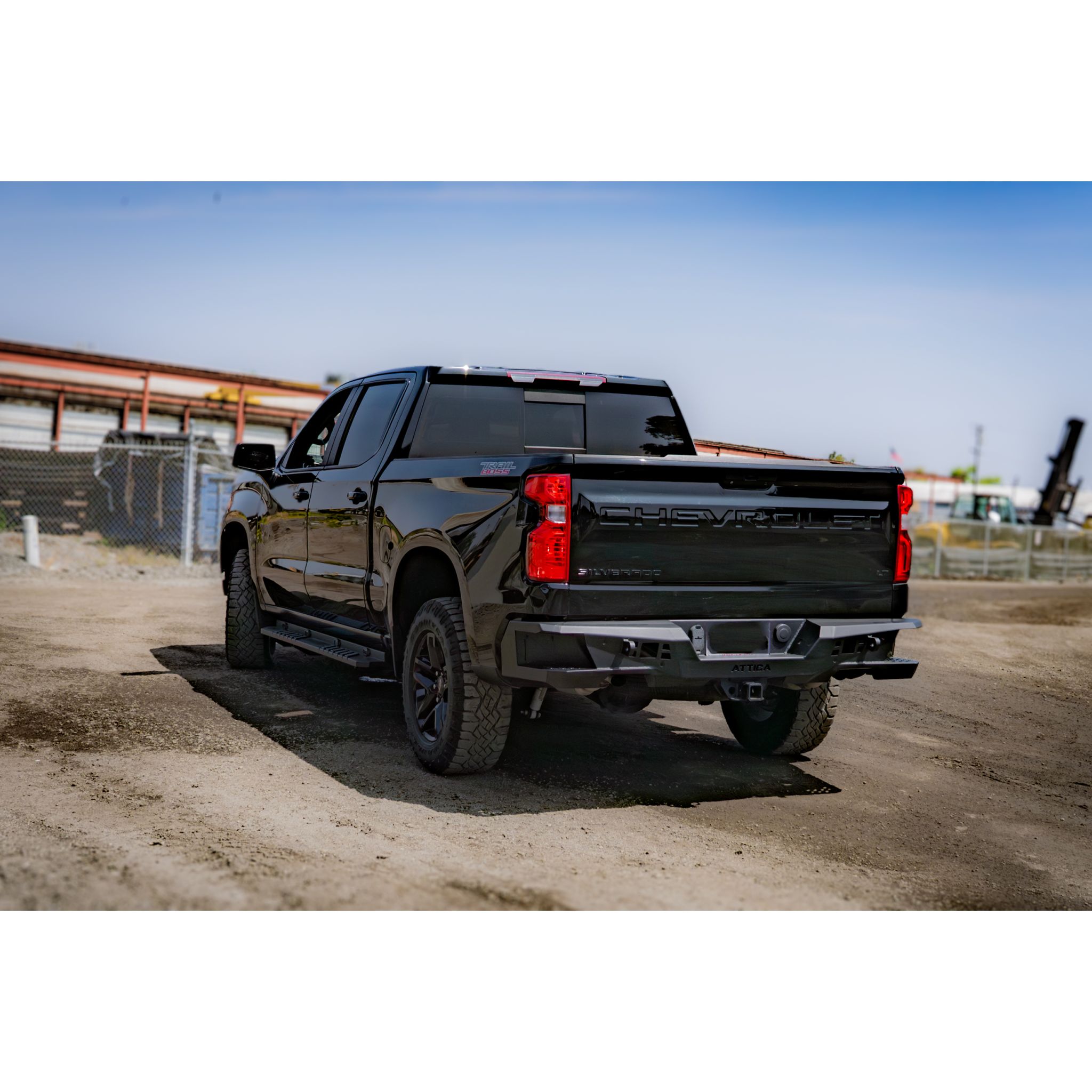 Upgrade your 2019-2024 Chevrolet Silverado / GMC Sierra 1500 with the Attica 4×4 Terra Series Rear Bumper, the ultimate combination of rugged durability and off-road style. Designed for full-width coverage, this rear bumper provides superior protection on any adventure. Its heavy-duty construction seamlessly integrates with your truck's factory receiver hitch, ensuring you retain full towing functionality without compromising strength or style.