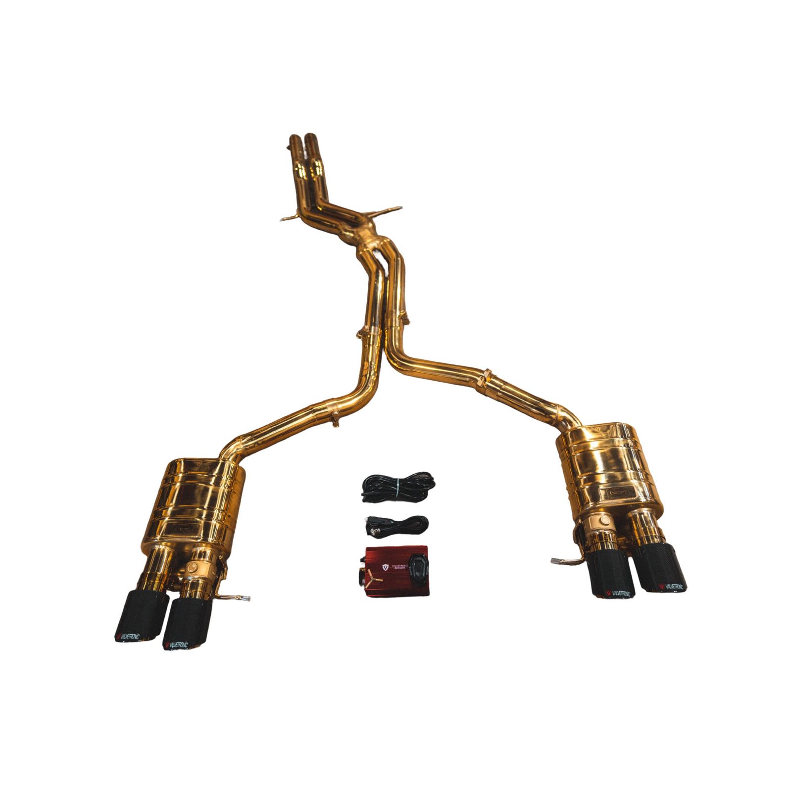What is Included: Valved exhaust system, Integrated high-pitch X-pipe, Vacuum-actuated valves with key fob control system, and Valvetronic carbon fiber tips