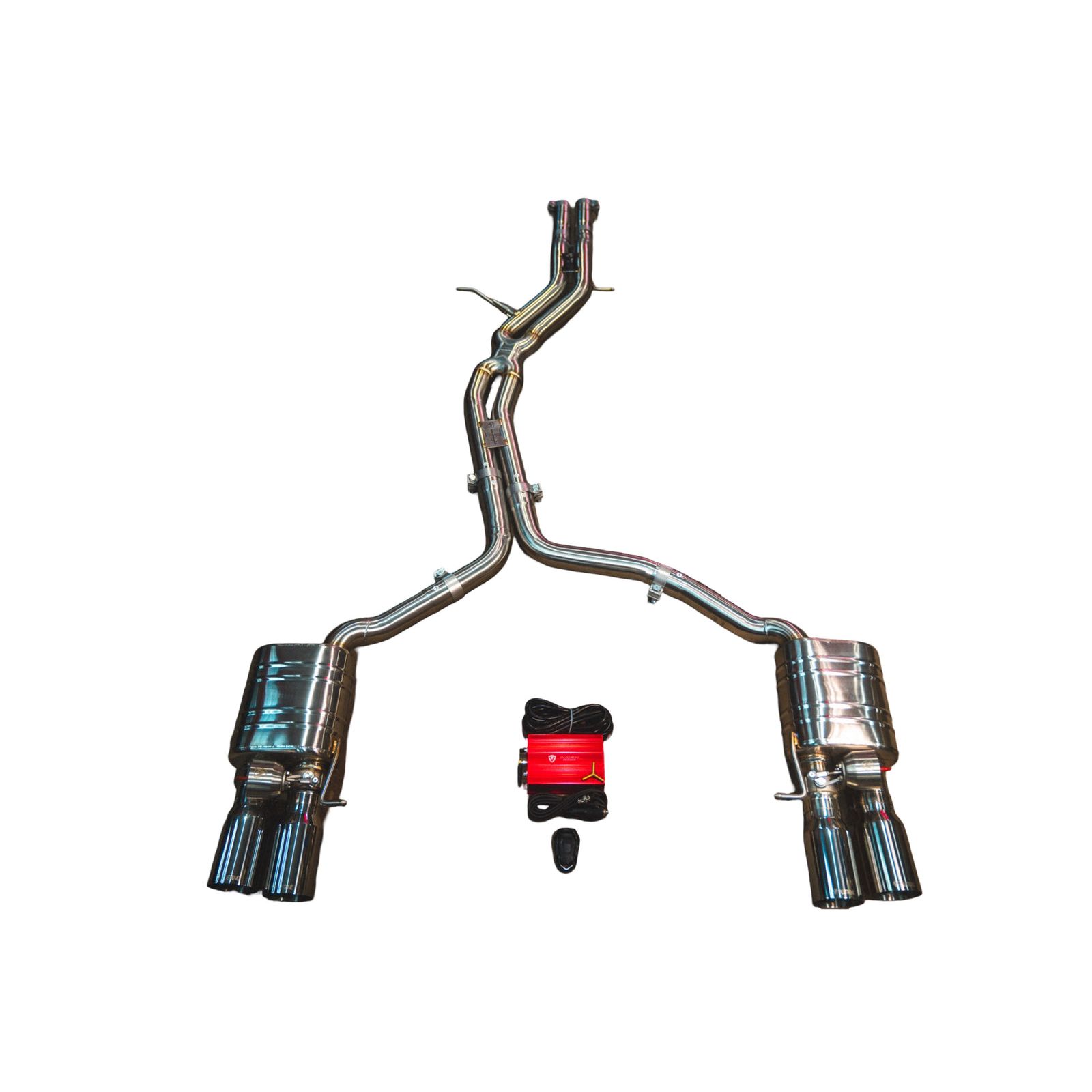 Our Valvetronic Designs Valved Exhaust System for the Audi B8 and B8.5 S4/S5 delivers a unique, high-pitch wail while retaining low-end rawness for a sound profile unlike anything the platform has heard before. Constructed entirely from T304 stainless steel and featuring our high-pitch X-pipe technology, this system runs 2.5 inches from front to rear, unlocking an exhilarating tone across the entire rev range. With integrated vacuum-actuated valves controlled via an included key fob remote, you have instant flexibility to switch from refined cruising to an aggressive, motorsport-inspired soundtrack.