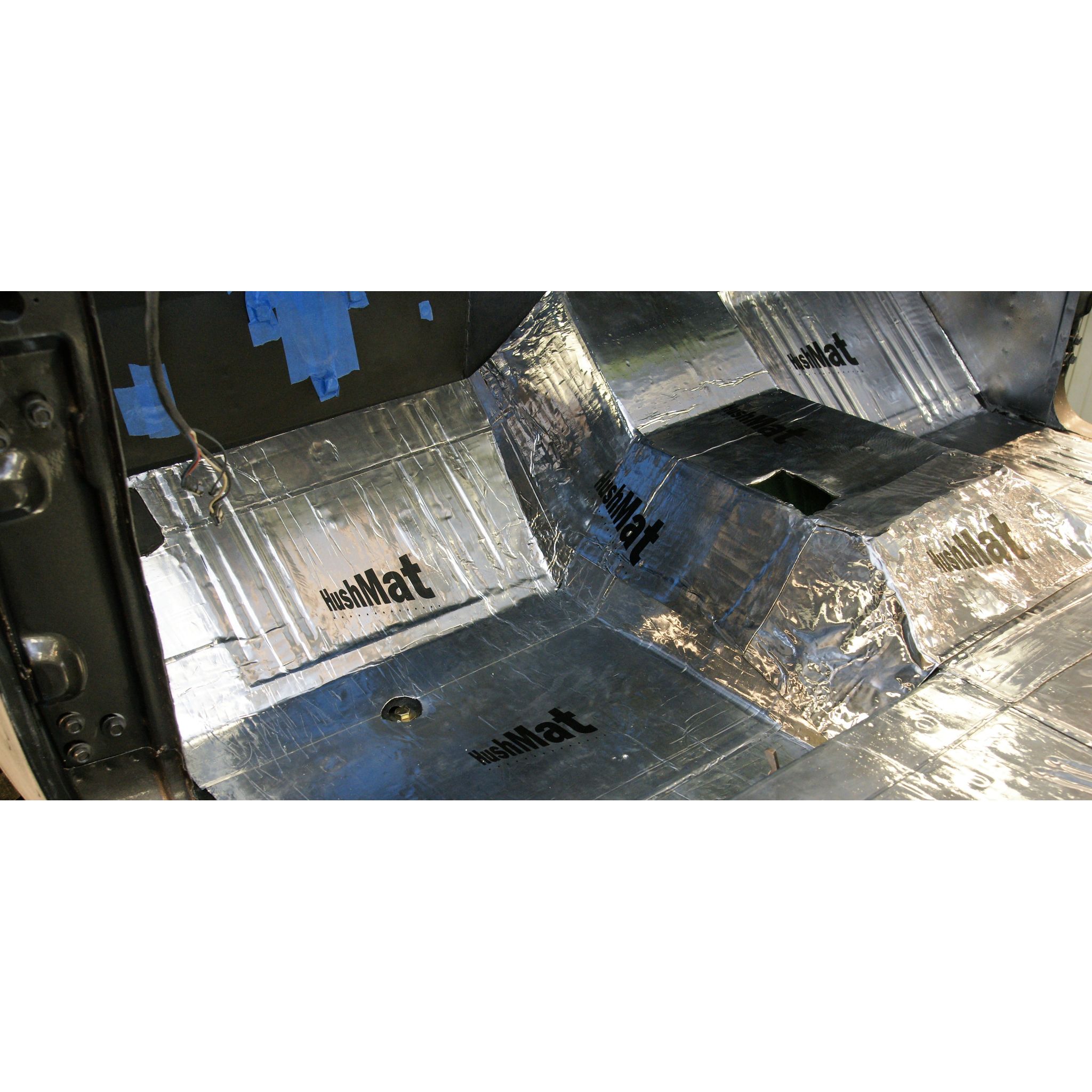Hushmat Year, Make and Model Floor and Firewall Sound Deadening and Thermal Insulation Kit covers 100 percent of the floor and firewall from the back of the instrument panel to the rear seat including the transmission tunnel.