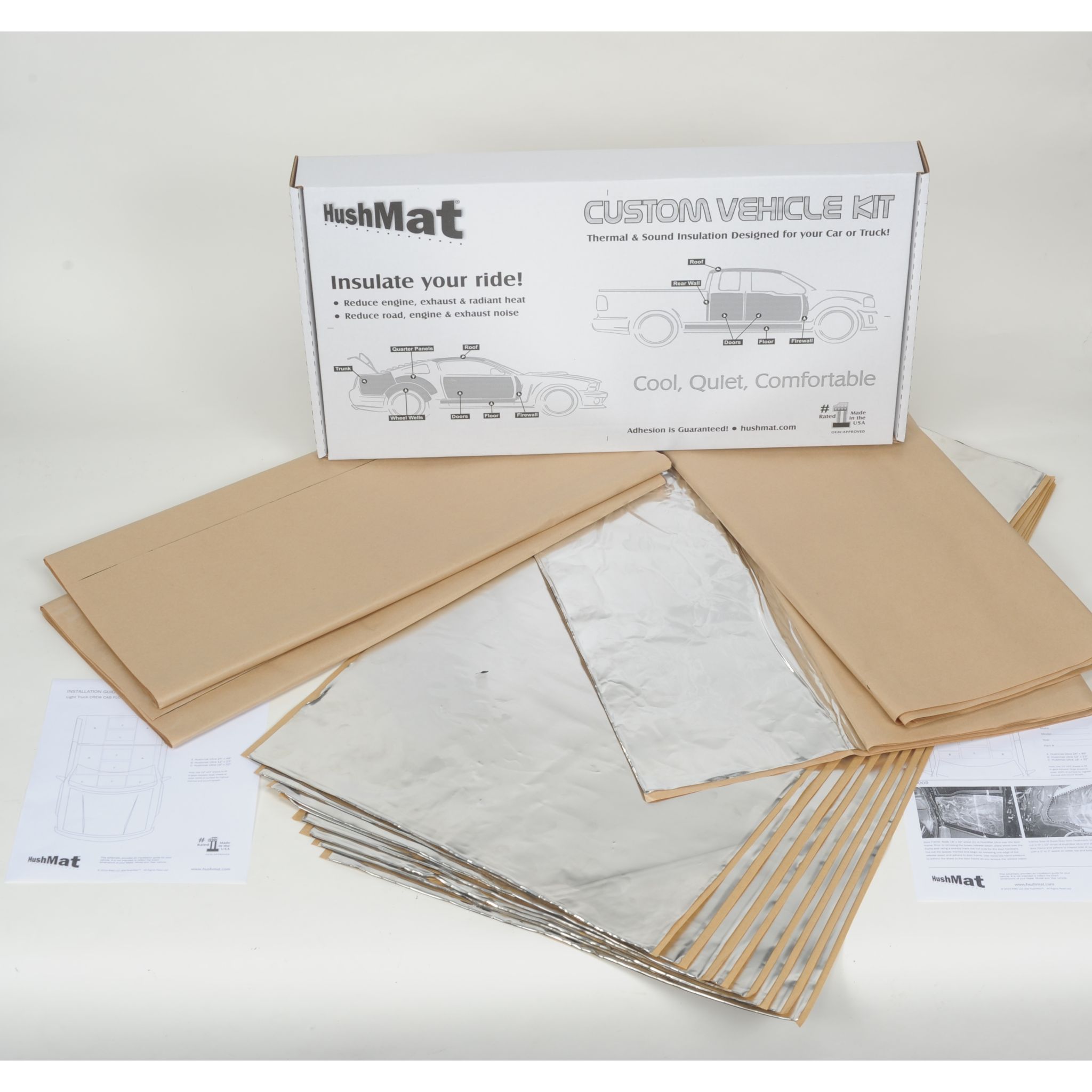 Hushmat Complete Year, Make and Model Vehicle Insulation kit covers 100 percent of the area of your vehicles firewall, floor, doors, roof and trunk. HushMat has determined the exact amount of material required for your vehicle.